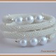 Тонкий вязаный бисерный жгут цвета айвори в сочетании с мемори проволокой и акриловыми бусинами сформировался в романтический браслет, который будет прекрасным дополнением как к вечернему наряду, так и повседневной одежде.