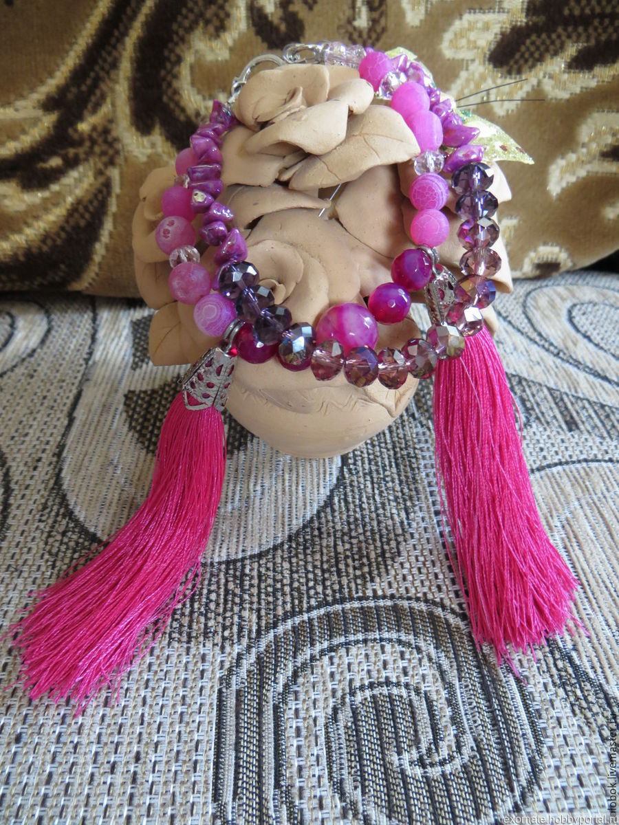украшение, браслет, модный браслет, красивый браслет, украшение для девушки, браслет с кисточками, хрусталь, браслет с агатом