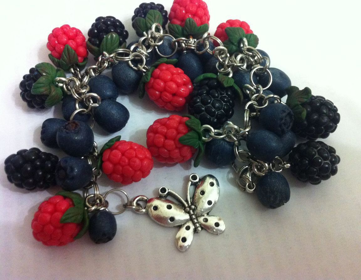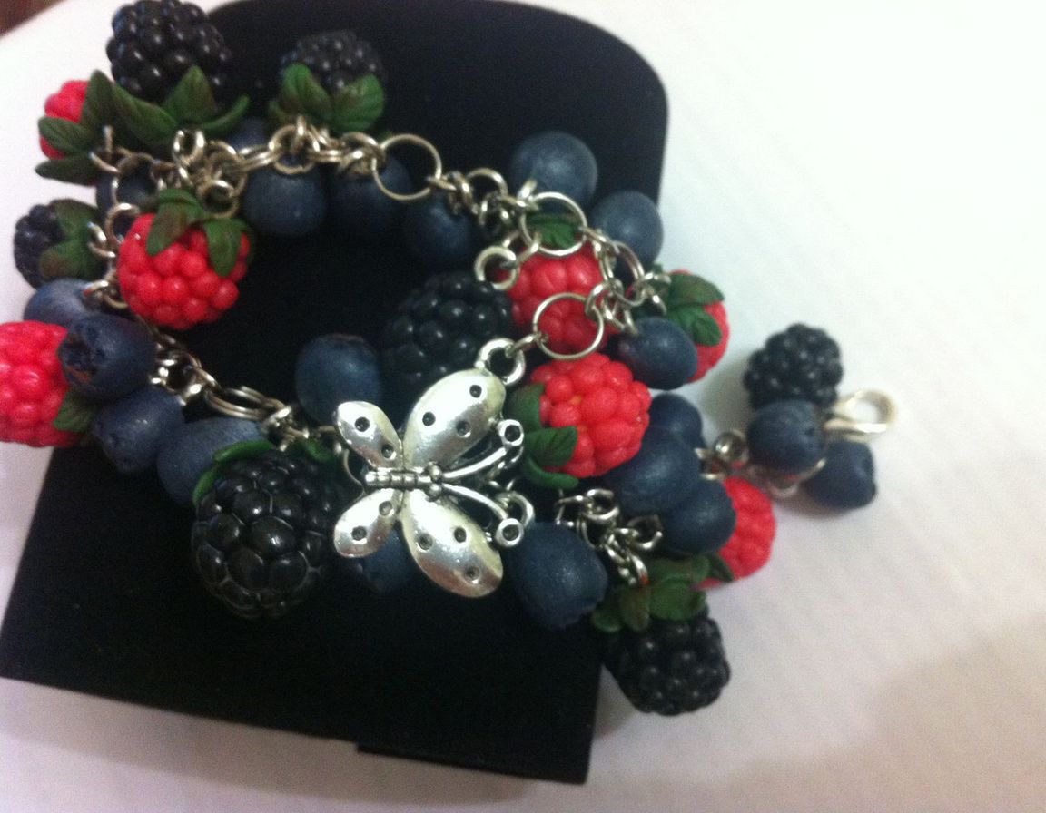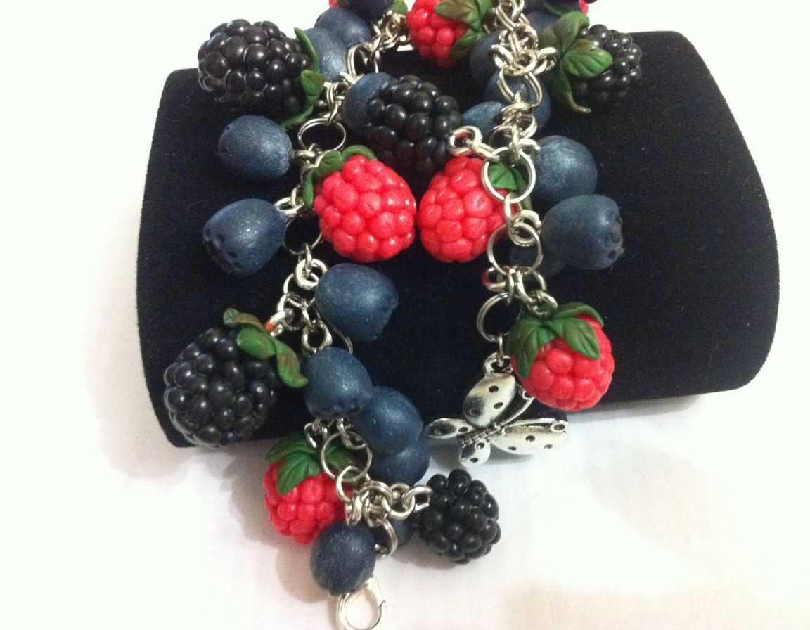 ягоды, малина, ежевика, черника, лето, браслет, подарок, эксклюзив, handmade, ручная работа handmade, браслет ручной работы, комбинированный, полимерная глина, украшение на руку, ягодный, bracelet, вкусный браслет, бижутерия с ягодами, браслет с лесными ягодами, малина ежевика черника