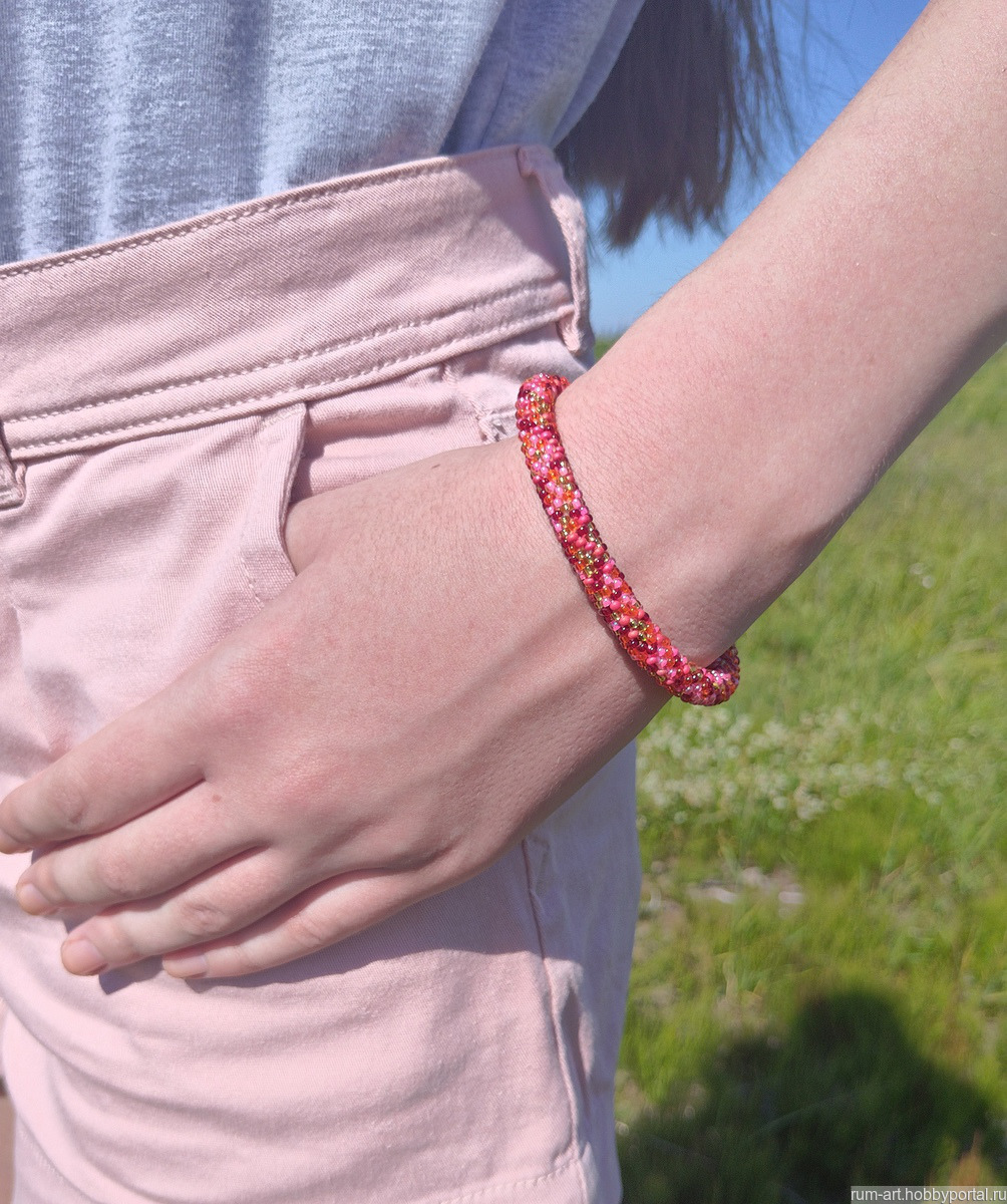 браслет из бисера, украшение ручной работы, авторское украшение, браслет ручной работы, браслет женский купить, браслет жгут из бисера, Рум арт, оригинальное украшение купить, украшение ручной работы купить, браслет для девушки купить, браслет жгут из бисера купить, браслет девушке купить, браслет для подруги купить, Браслет розово-золотистый купить