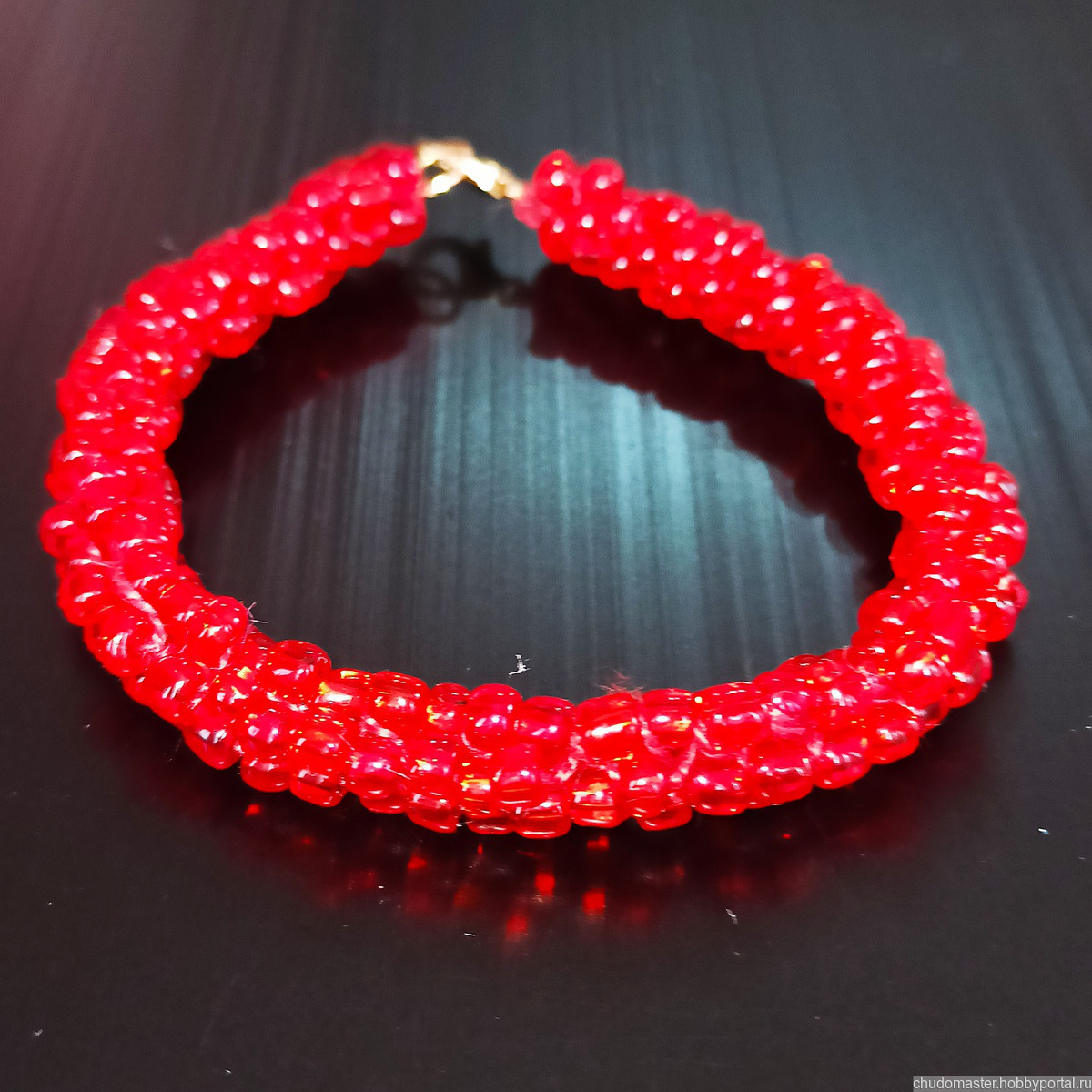 Шикарный плетенный браслет-жгут из стеклянного бисера насыщенно алого цвета, переливающего на свету и притягивающий. как магнит. внимание.