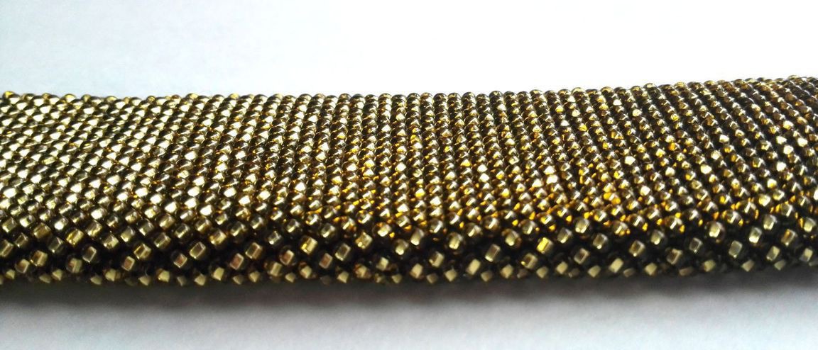 Широкий браслет выполнен из чешского бисера золотистого цвета на черной нити, что придает необычность украшению. Очень необычное, стильное украшение. Застегивается на удобный магнитный замок-слайдер.