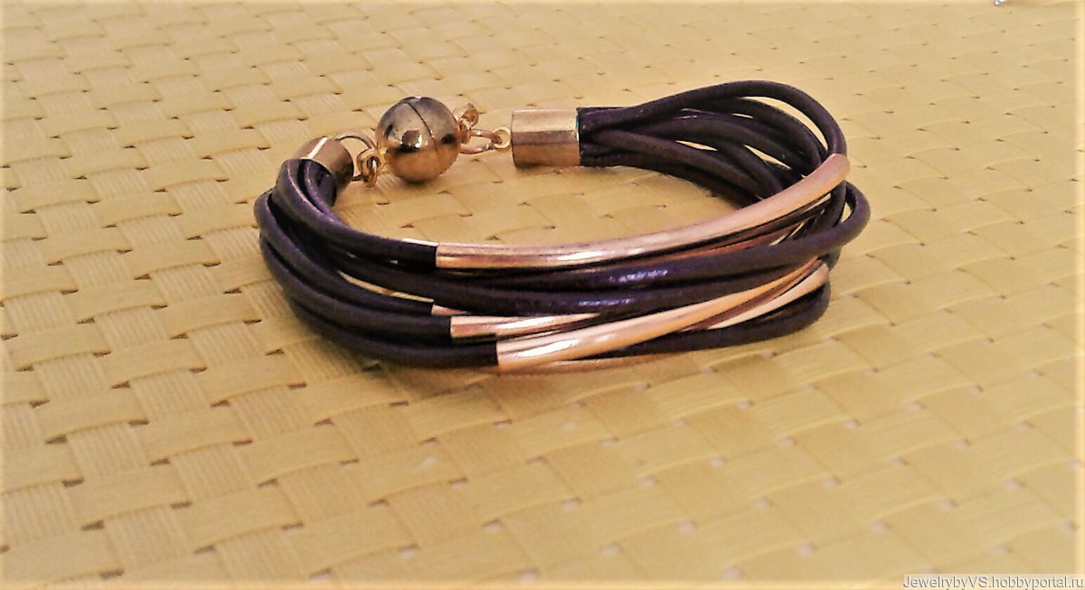 Кожаный браслет с декоративным металлическим элементом на магнитном замочке. Длина - 15 см. Цена указана без учета стоимости пересылки.