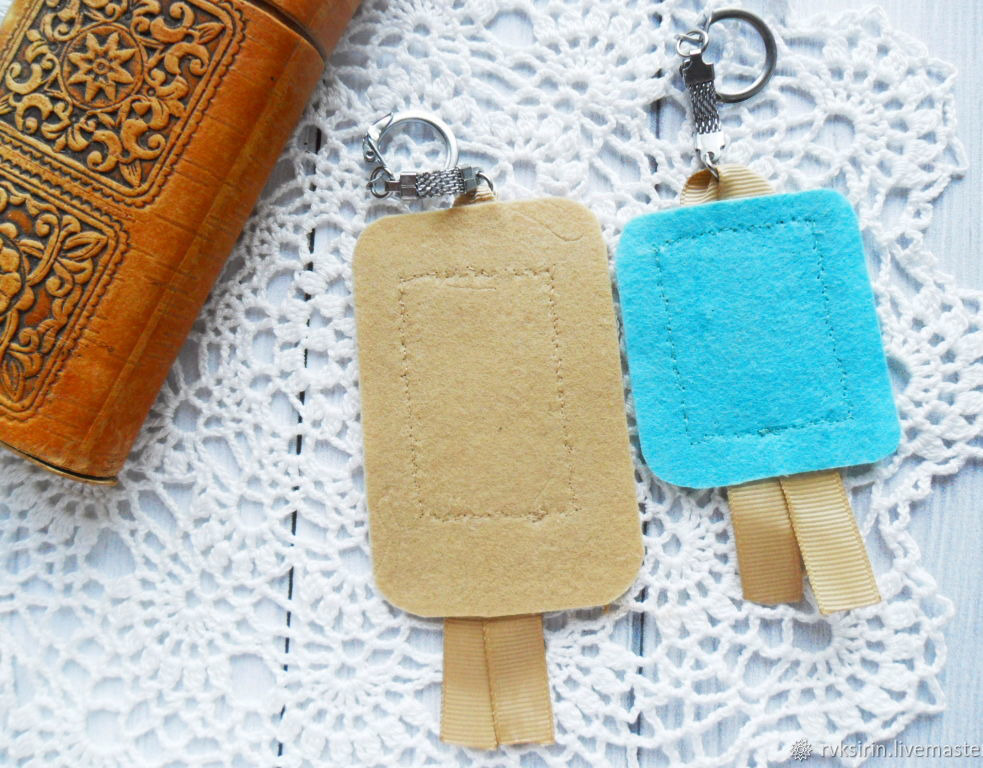 фетр на бежевом брелке 9х6 см, на бирюзовом 6х5,5 см