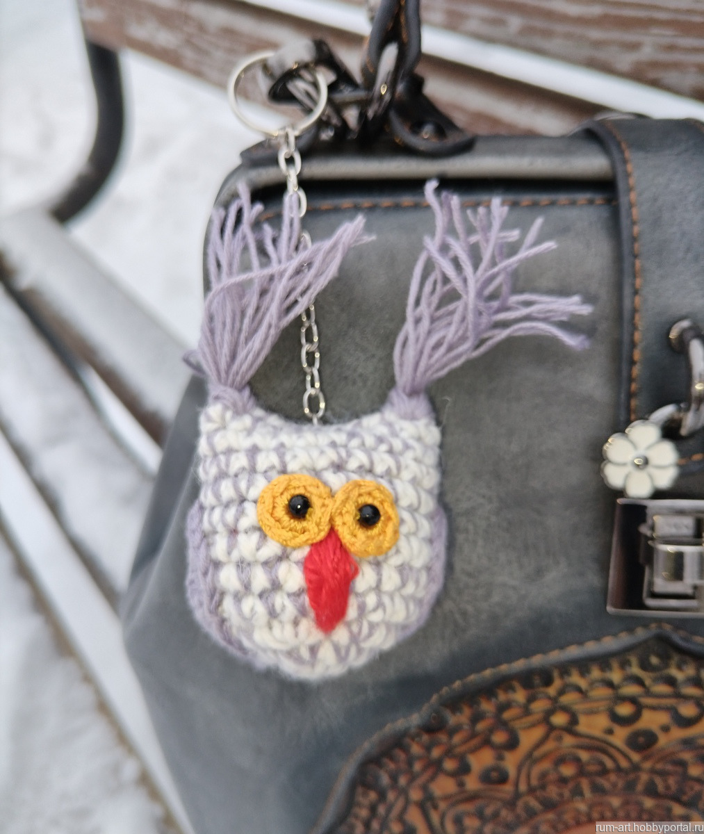Совушка брелок-игрушка мягкий связана из пряжи акрил с хлопком.