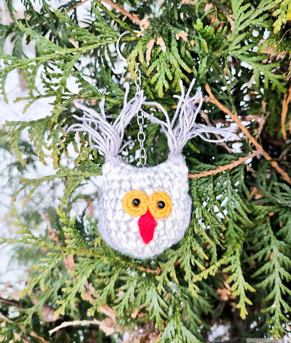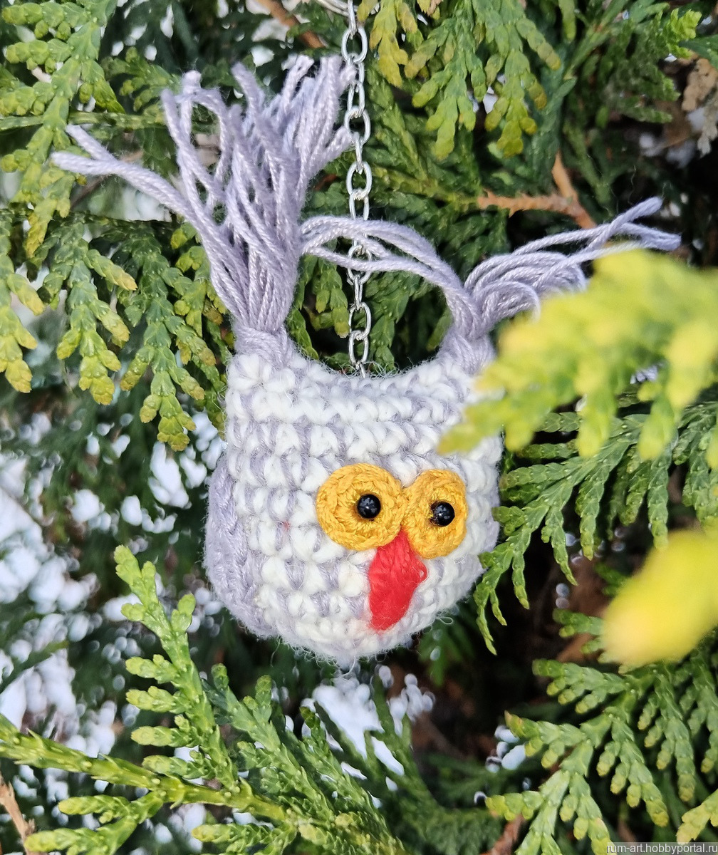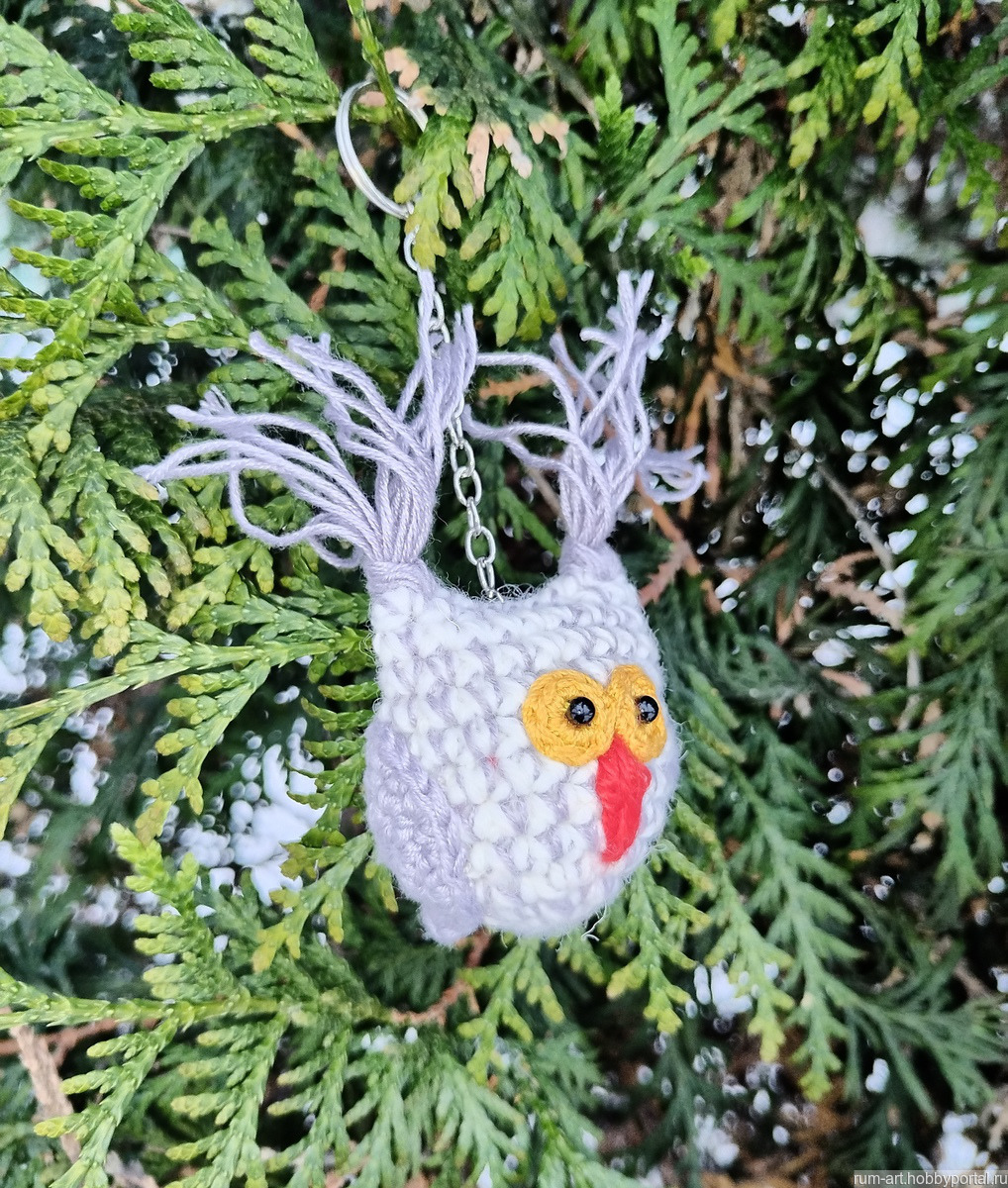 Совушка брелок-игрушка серый с белым мягкий вязаный