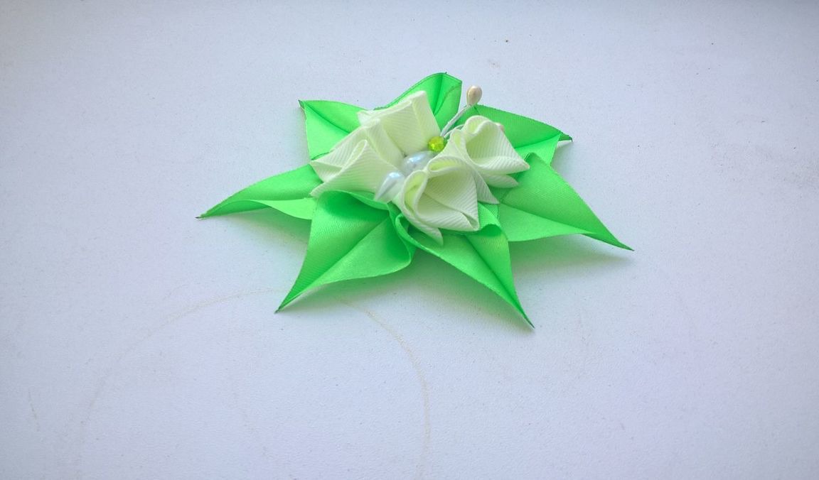 Чудесная нежнейшая мятно -салатовая брошь-бабочка. Выполнена из атласных и репсовых лент в сочетании с тычинками, бусинами и стразами. Прекрасное дополнение и акцент для любого образа.