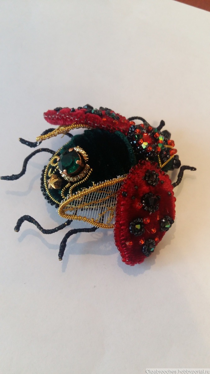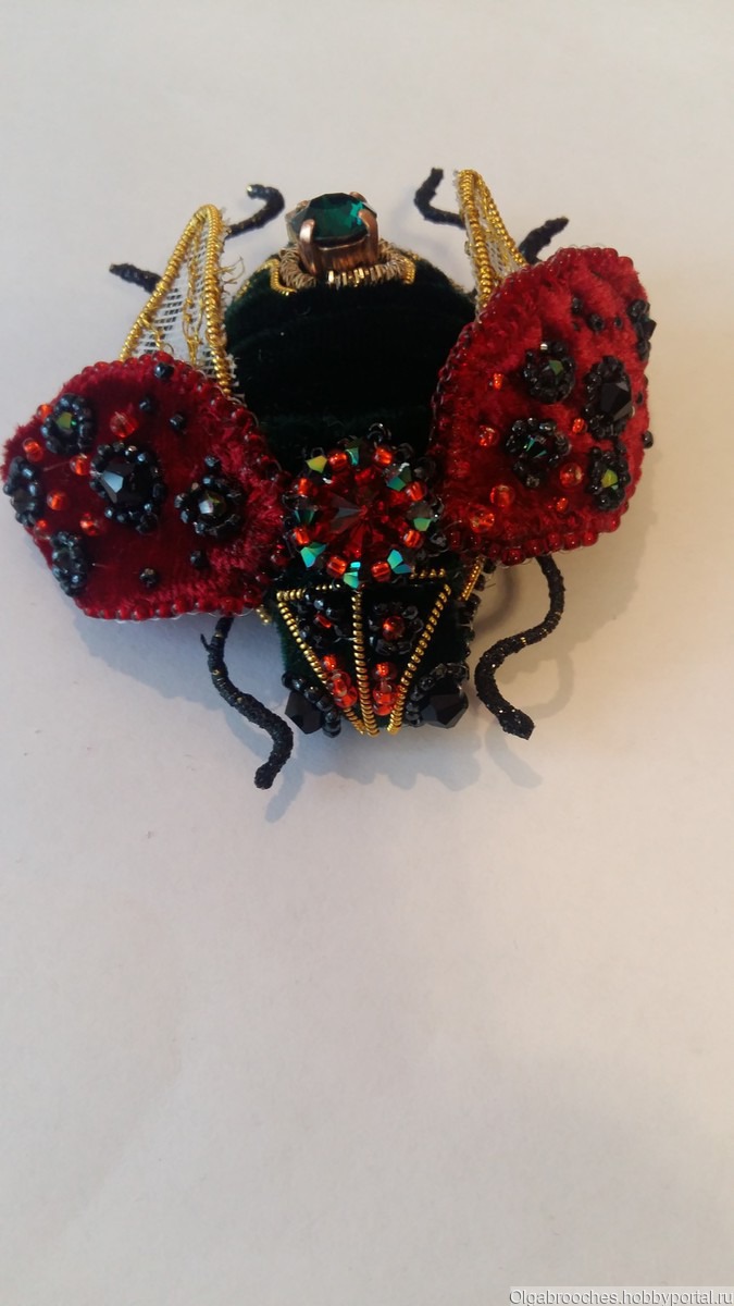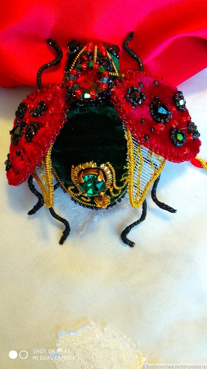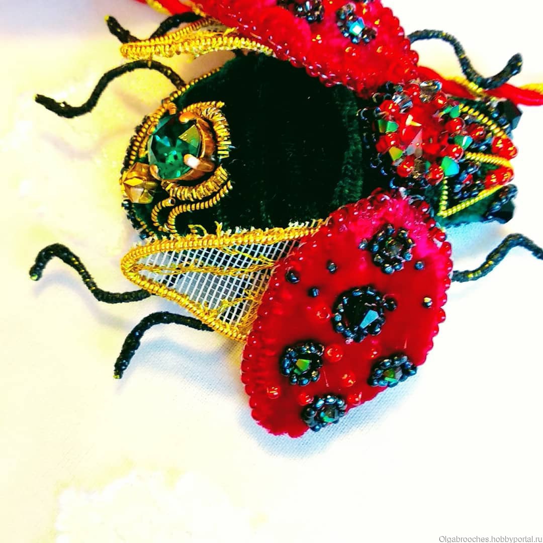 Брошь Божья коровка. Выполнена из итальянского шелкового бархата как крылья, так и тельце. На крыльях биконусы Сваровски цвета Scarabeus, чешский бисер. Над крыльями риволи сваровски красного цвета(размер 12 мм), оплетена биконусами сваровски. На спинке шатон сваровски цвета Emerald обшит трунцалом и жесткой канителью. Также на спинке кристалл Сваровски Star. Подкрылышки выполнены из фатина и жесткой канители. СВЕРКАЕТ НЕВЕРОЯТНО! Жаль что фото этого не передают!