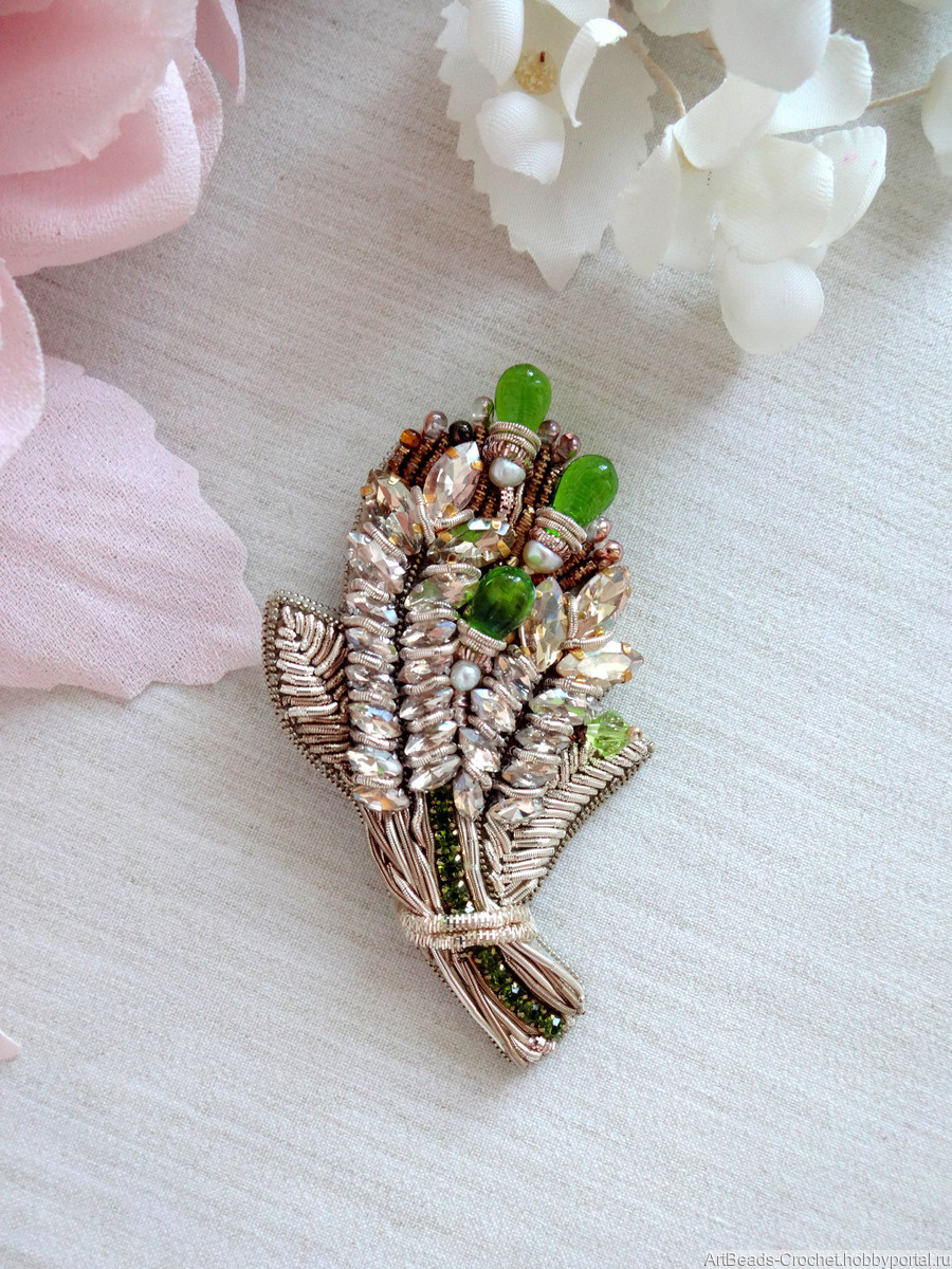 букет, брошь ручной работы, колоски, брошь из бисера, красивая брошь, брошь букетик, оливин
