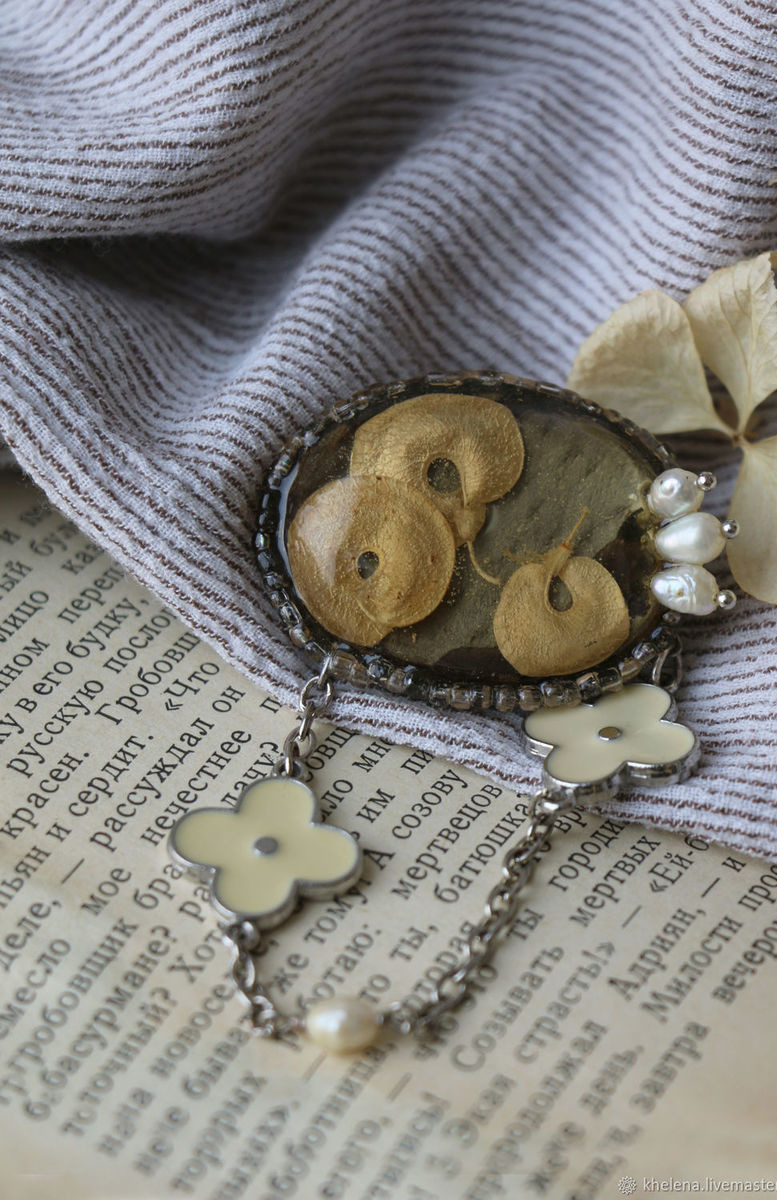 эпоксидная смола, винтажная фурнитура, жемчуг культивированный, сухоцветы, бисер стеклянный, кожа