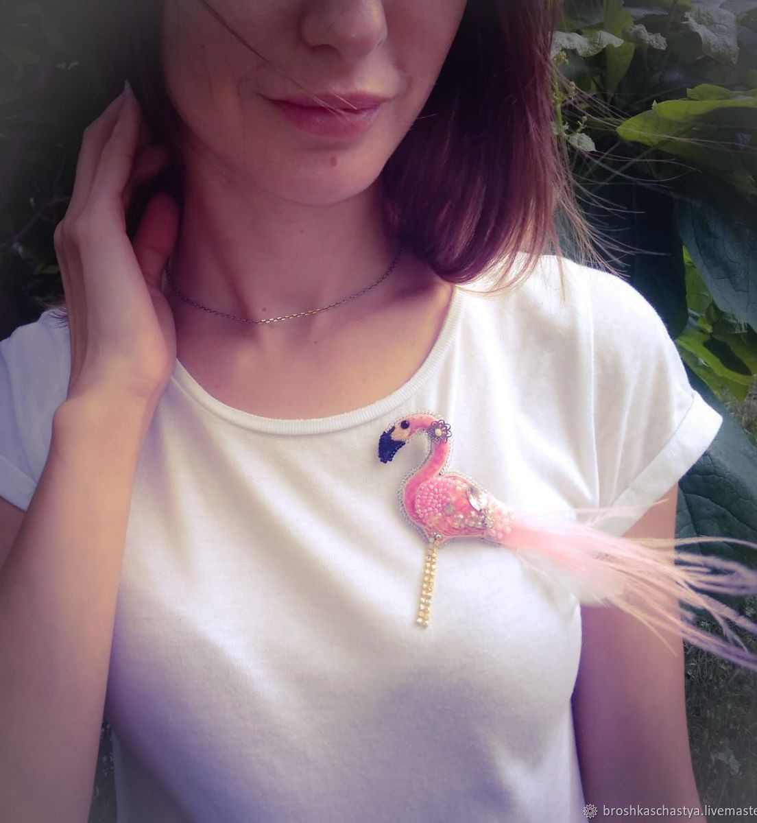 розовый, оригинальный подарок, брошь ручной работы, фламинго, брошь из бисера, для девушки подарок, птичка брошь, мода 2019