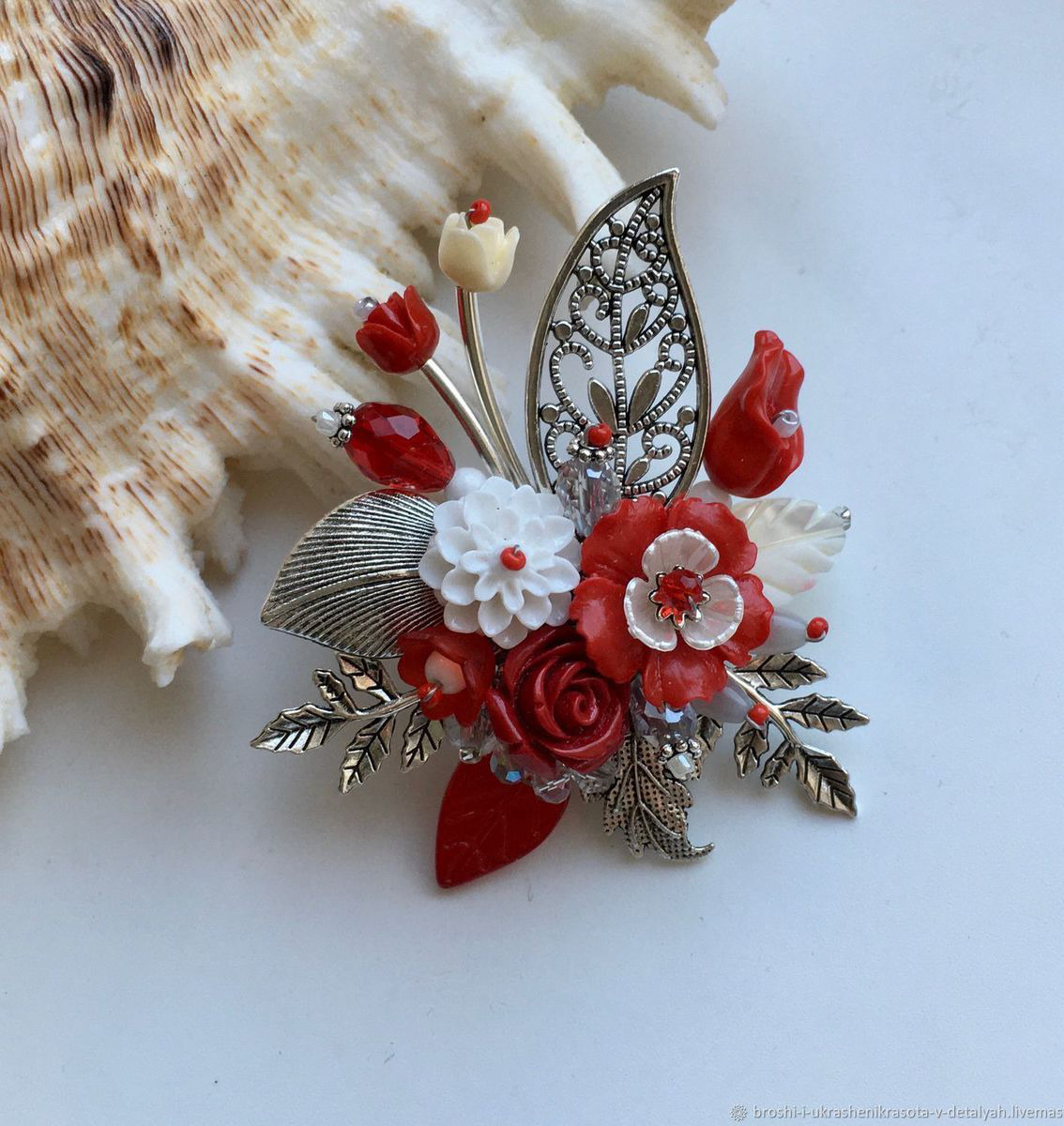 Каждая брошь — не просто композиция из бусин и цветов, это то самое очарование, которое мы испытываем от соприкосновения с природой.