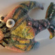 Сваляна из 100 % шерсти. Раскрашена вручную по специальной технике. Глазки слеплены вручную из запекаемого пластика. Украшена японским бисером Toho и стеклярусом. Оборотная сторона - фетр.