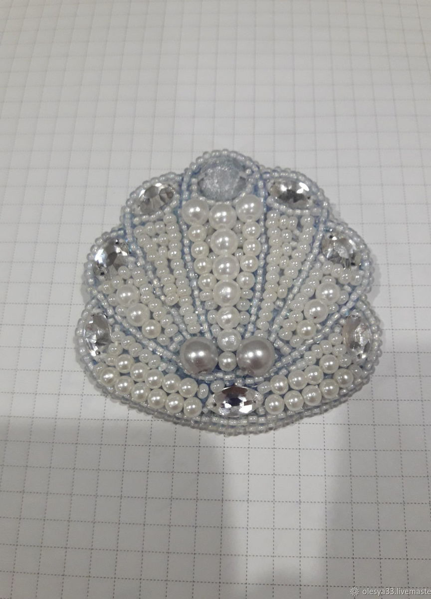 Брошь из бисера "Ракушка" в белом цвете.Отлично смотрится, подойдет к любому наряду,дополнит образ.