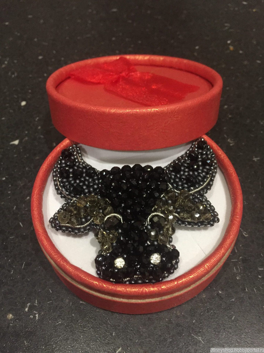 Брошь Бык - Символ наступающего года. Выполнена из бисера, страз, ронделей, канители.