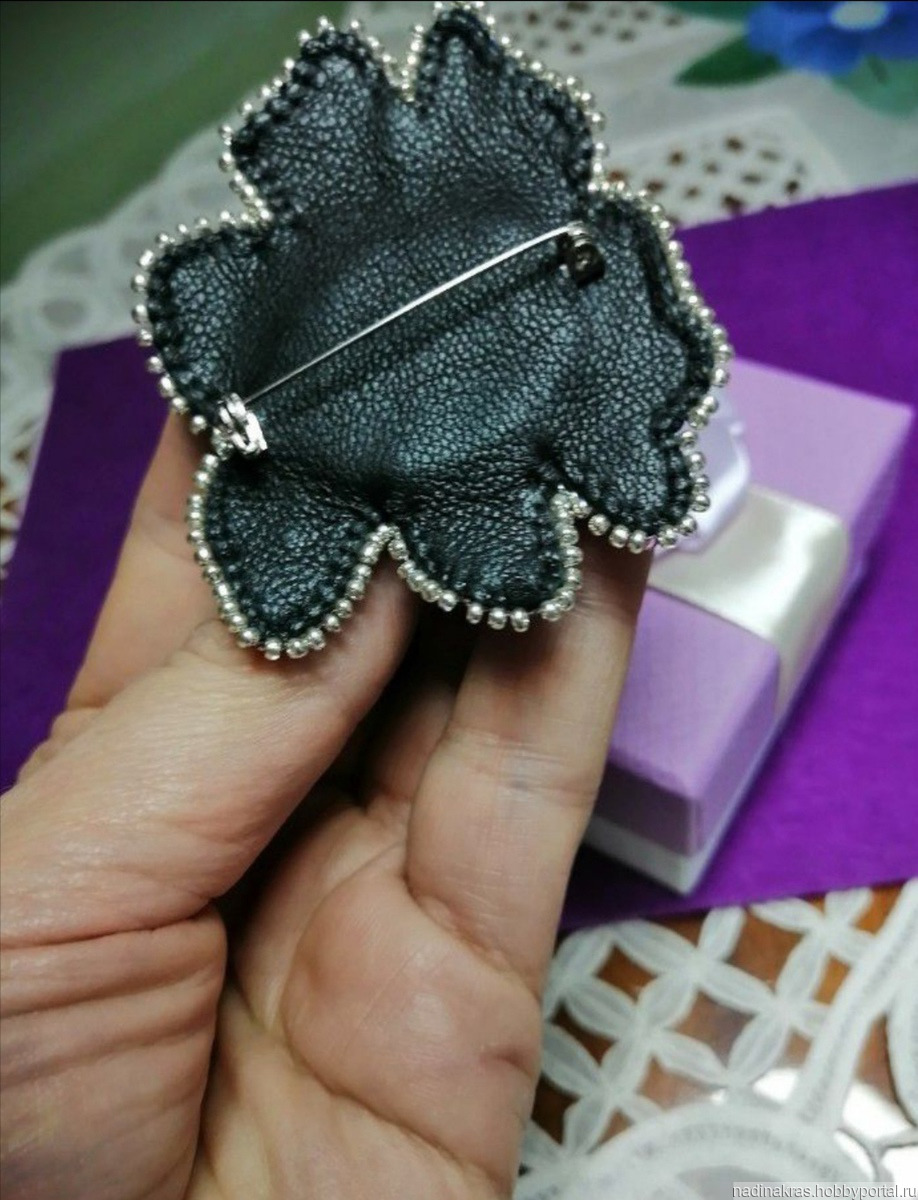 натуральная кожа, бисер чехия, булавка, бисер японский чешский, бисер стеклянный, стразы пришивные