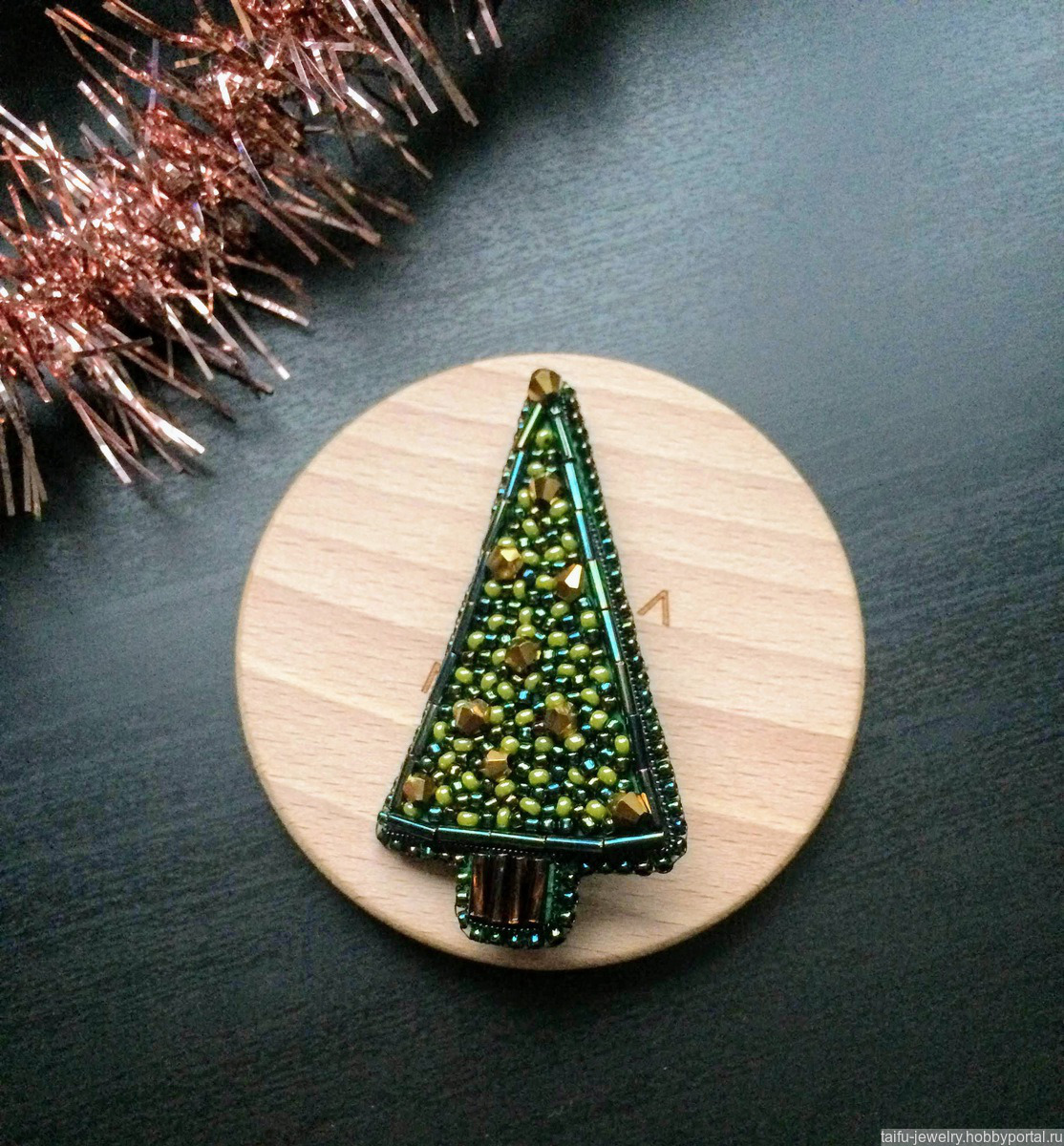 подарок на новый год, вышивка бисером, брошь, подарок, брошь ручной работы, елочка, новогоднее украшение, брошь вышитая бисером, брошь в подарок