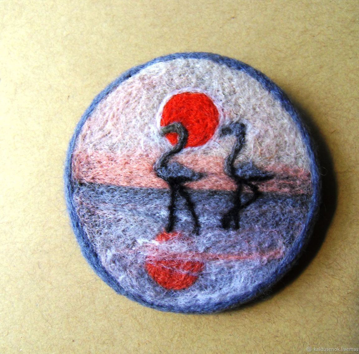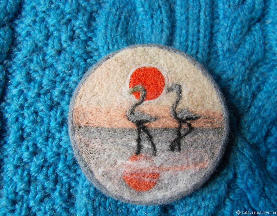 брошь, брошь ручной работы, фламинго, розовый фламинго, брошь купить, брошь из войлока, брошь в подарок, брошь из шерсти, брошь-медальон, брошь с фламинго, брошь - картина