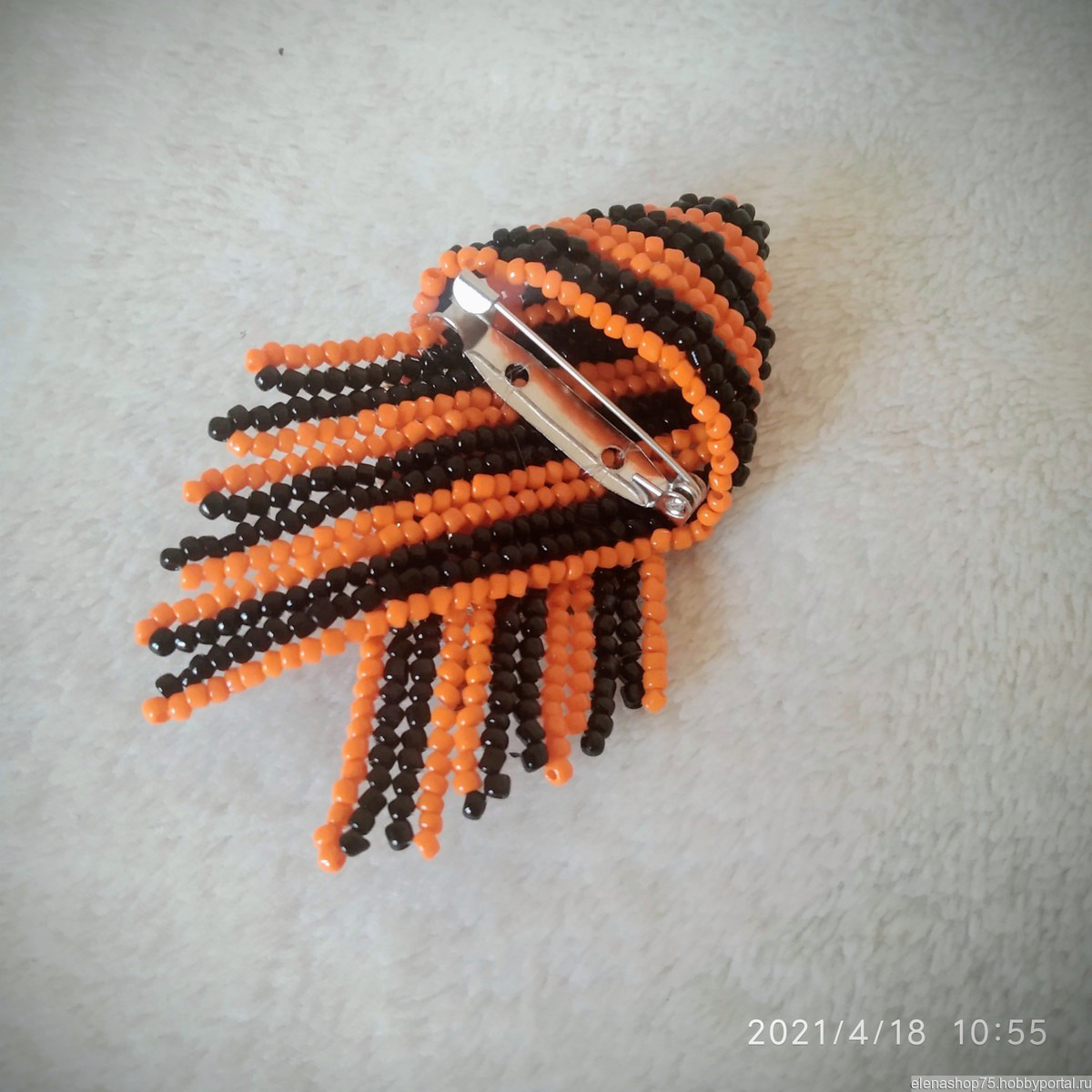 брошь, 9 мая, брошь ручной работы, день победы, георгиевская лента, брошь из бисера, георгиевская брошь, лавр