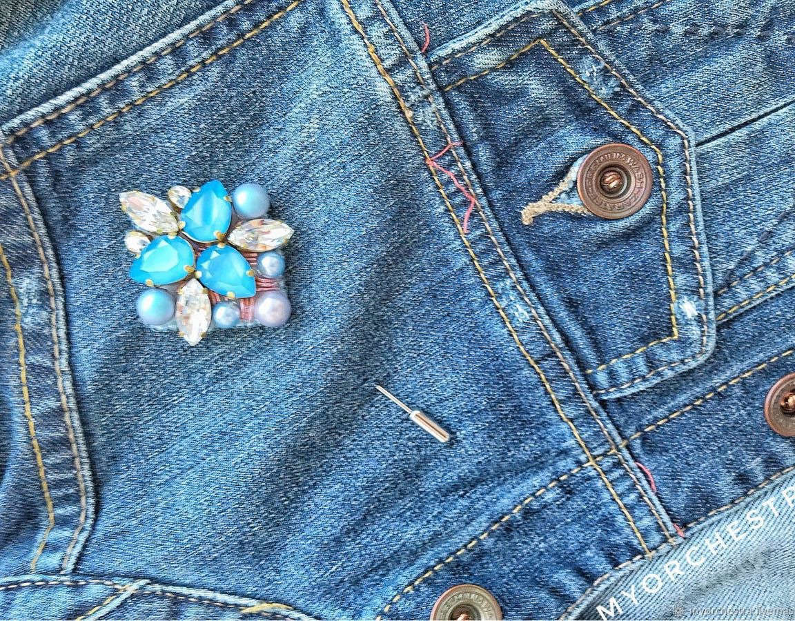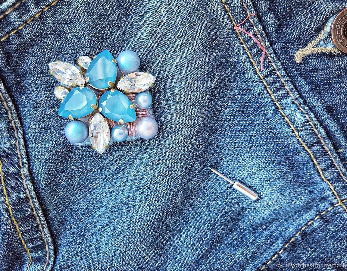 голубой, брошь, подарок девушке, Питер, брошь ручной работы, купить подарок, брошь на пальто, брошь на пиджак, купить, swarovski, москва, СПб, голубая брошь, брошь на заказ, красивая брошь, брошь-игла, брошь иголка, брошь swarovski, брошь из кристаллов