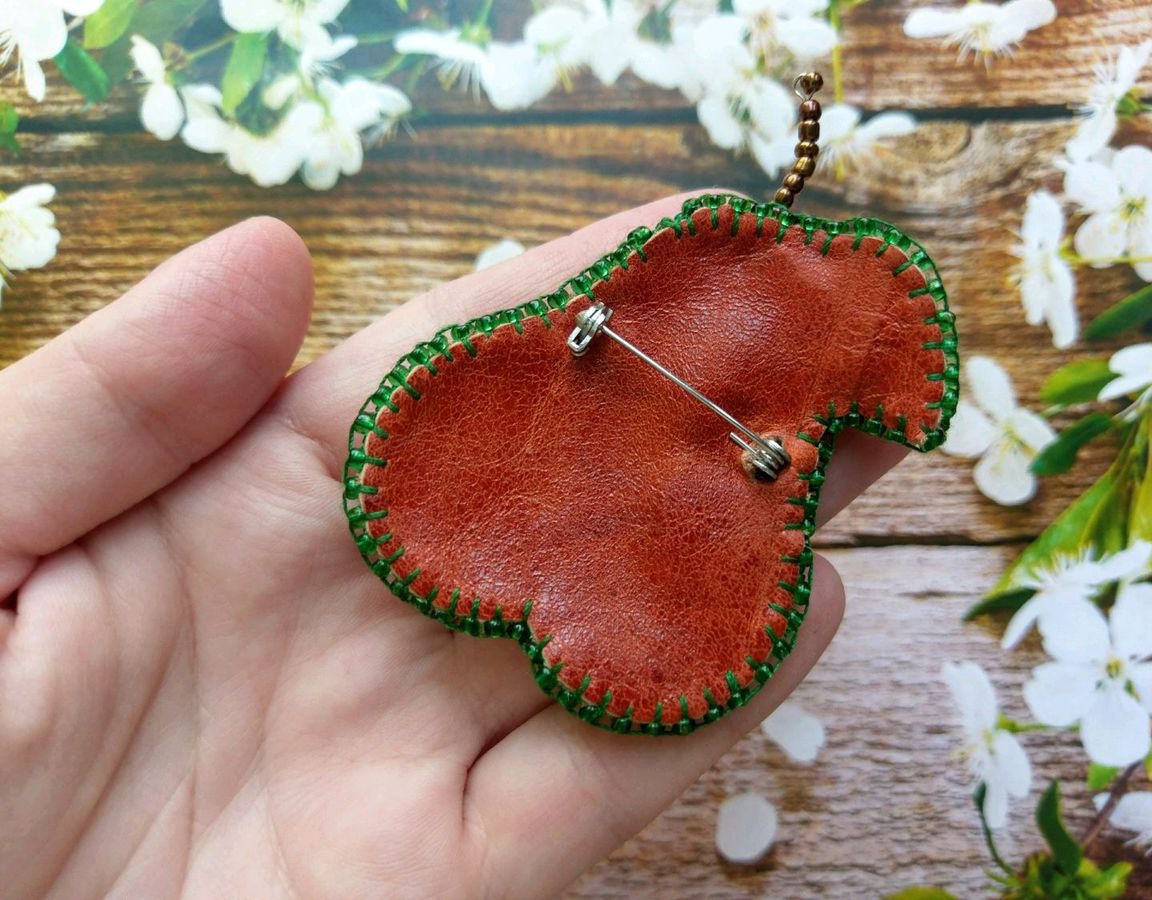 бисер, натуральная кожа, застежка для броши, фетр, пайетки, бисер чешский, мулине дмс (dms)