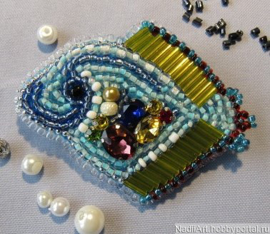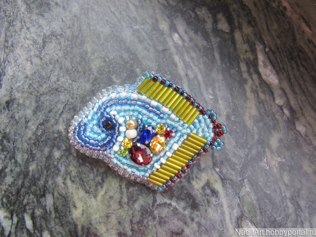 застежка для броши, бисер чехия, кристаллы
