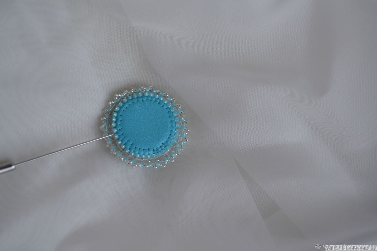 Брошь игла из бисера и бусин чешского стекла. Изнанка натуральная кожа