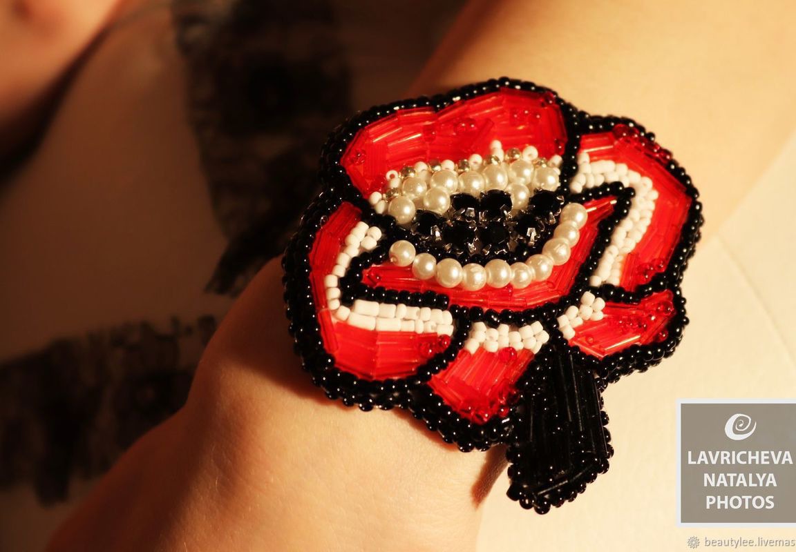 ярко-красный, цветок, ручная работа, брошь, цветы, мак, подарок, красный мак, брошка, брошь из бисера