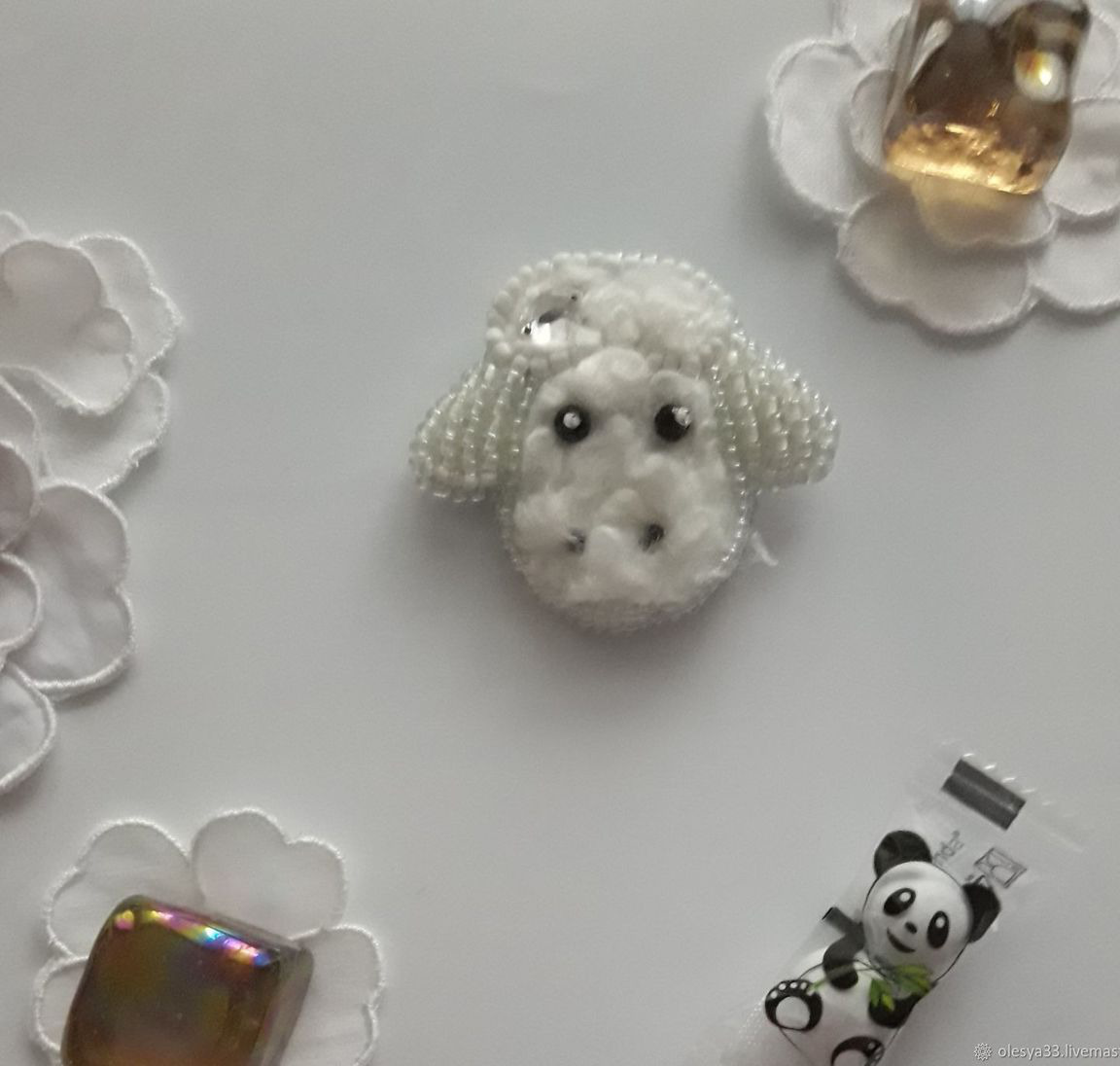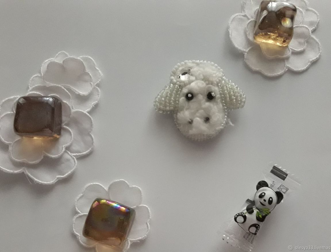 брошь, брошь ручной работы, брошь-булавка, брошь из бисера, брошь в подарок, брошь овечка