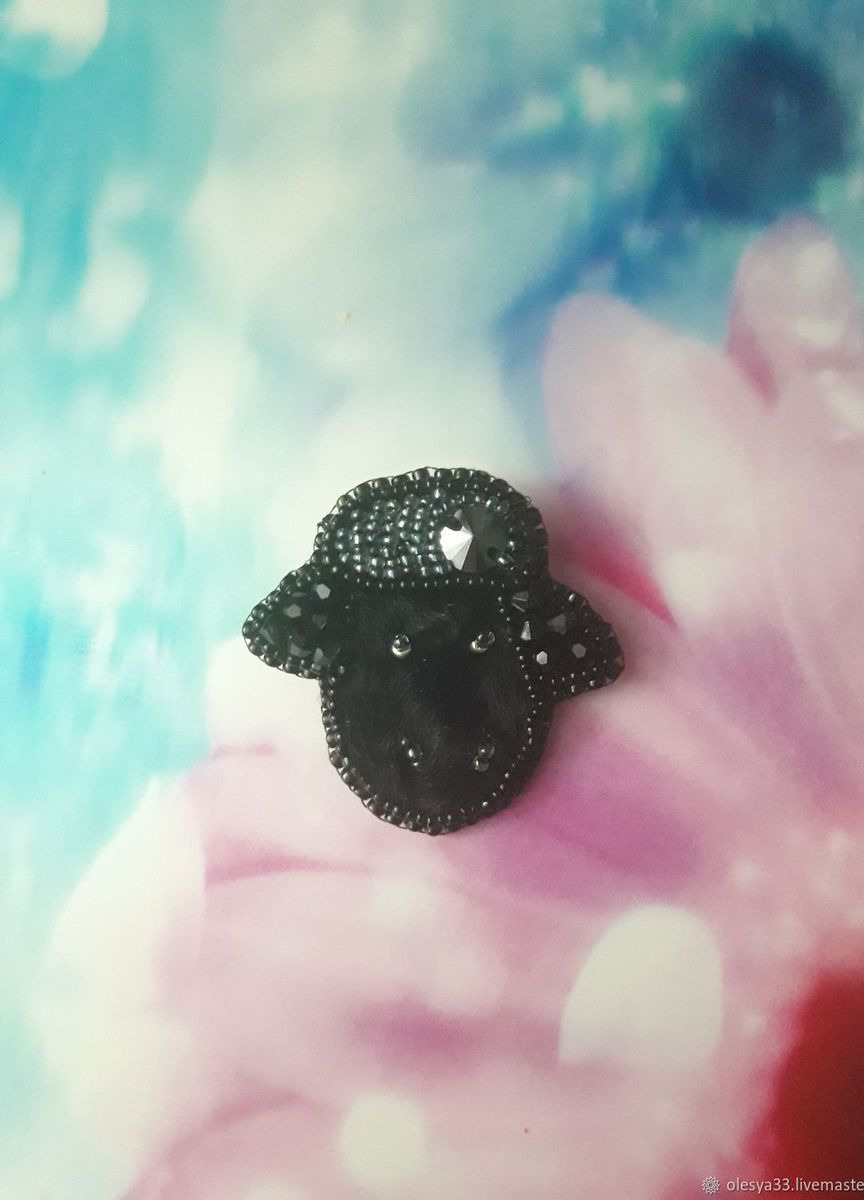 Брошь из бисера "Овечка"-белая и черная.Украшена мехам,бисером,стразами.