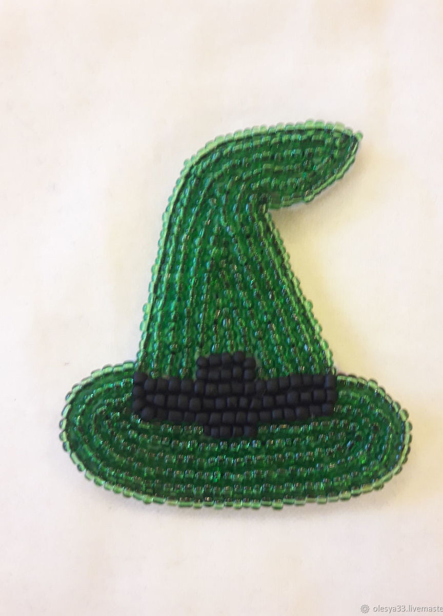 Брошка из бисера "Шляпка".Выполнена в двух цветах-зеленом и фиолетовом.