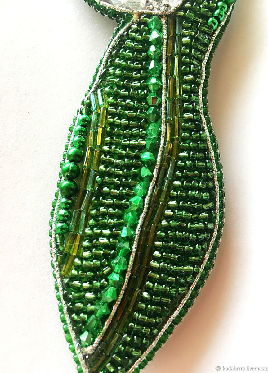 Брошь в форме цветка "Тюльпан серебристый" вышита бисером, стеклярусом, бусинами, биконусами. Изнанка обработана натуральной замшей. Очень легкая.