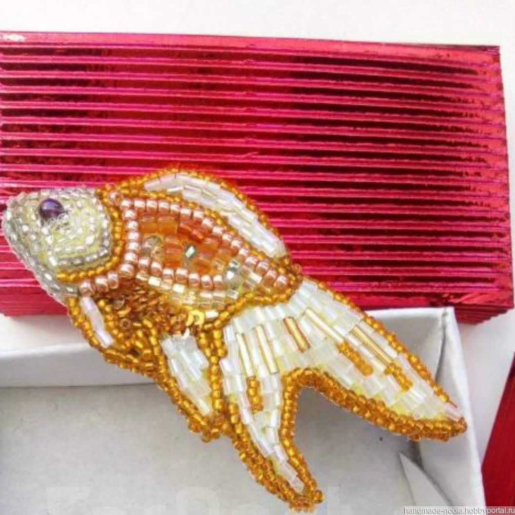 "Золотая рыбка" исполняет желания своей хозяйки! Брошь крупная и заметная, надежная булавка с фиксатором, изнанка из золотистого кожзама.
