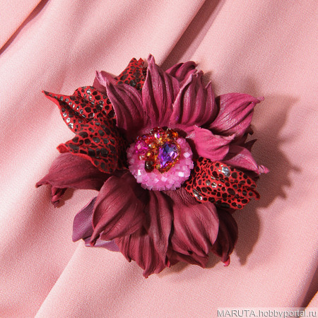 цветок, украшение, подарок на новый год, подарок на день рождения, бордовый, брошь, подарок девушке, подарок на любой случай, украшение ручной работы, украшение для девушки, брошь ручной работы, цветы ручной работы, брошь цветок, кожа натуральная, цветочная брошь, украшение из бисера, цветочное украшение, кожаная брошь, украшения из кожи