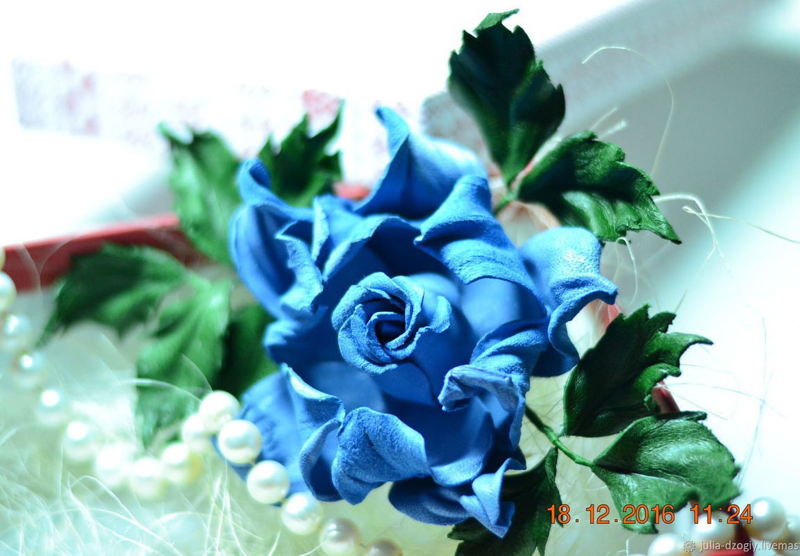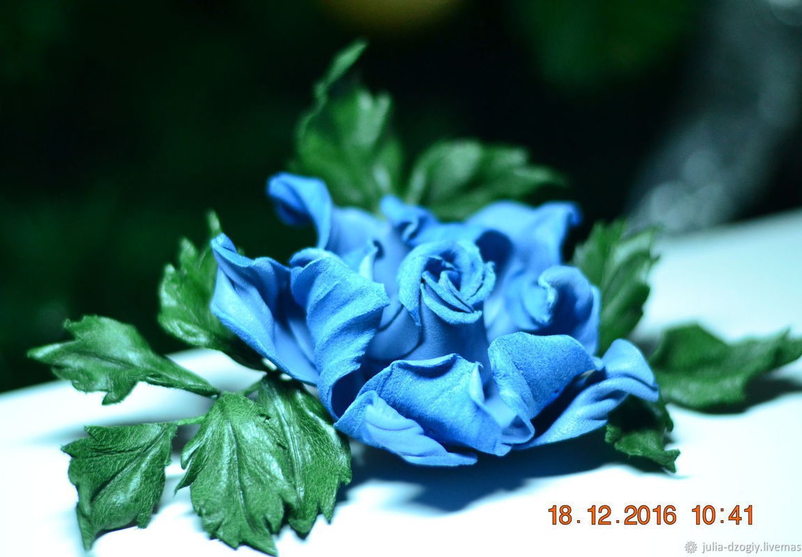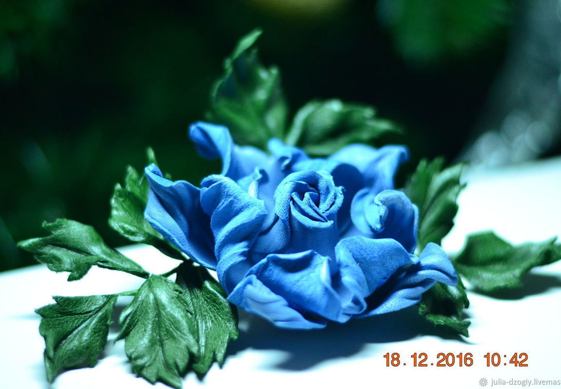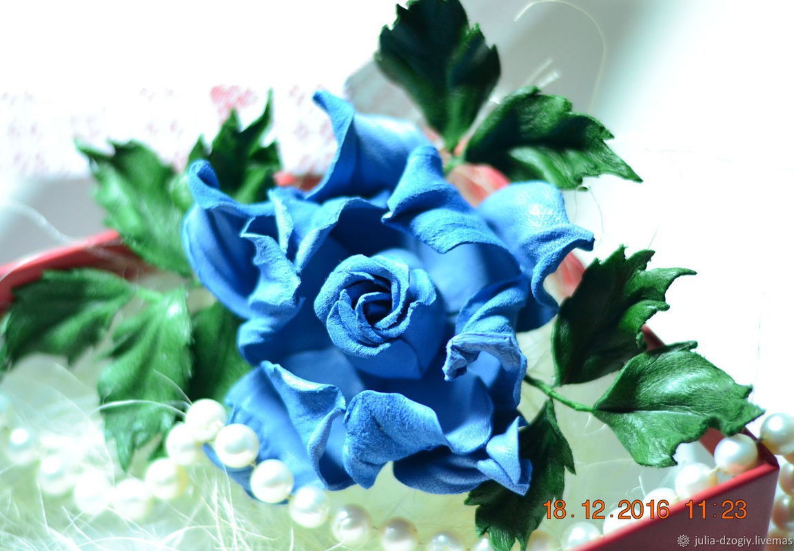 Брошь роза "Земфина" выполнена из натуральной итальянской кожи. Роза имеет очень нежный голубой цвет с золотым напылением. Станет прекрасным подарком для себя и для своих близких. любит бережное отношение, не любит воду, не рекомендуется носить под верхнюю одежду, хранить в коробочке(подарочная коробочка прилагается)