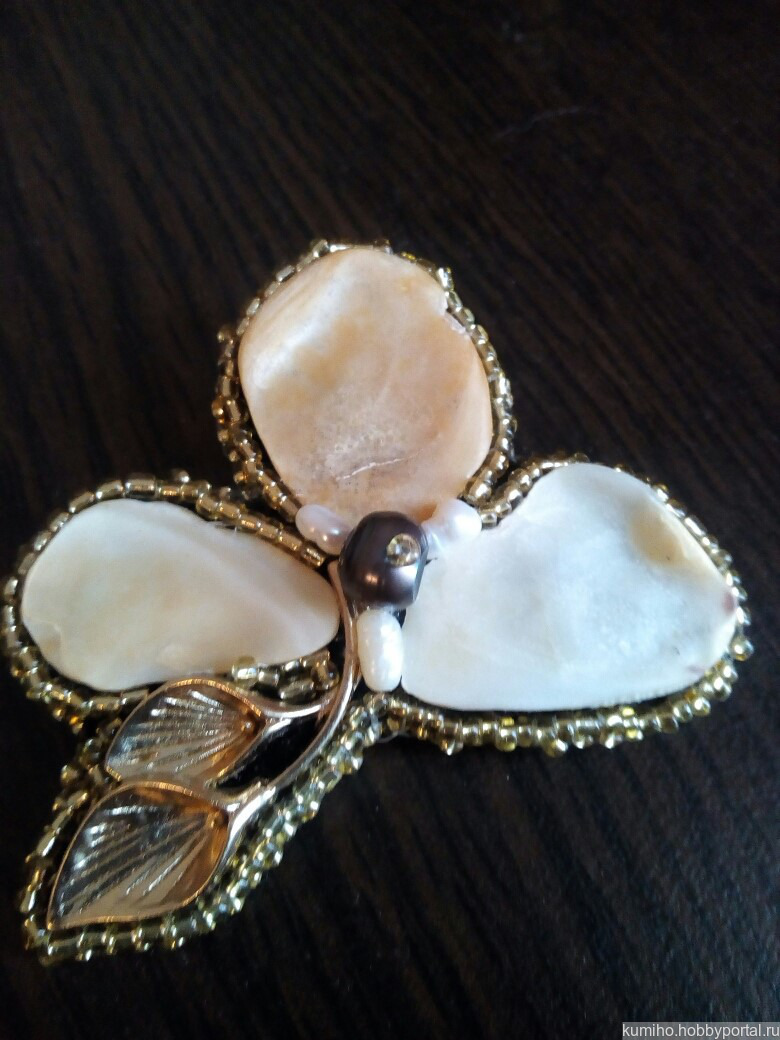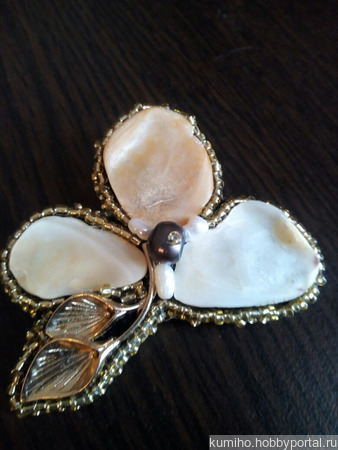 Легкая изящная брошь из перламутра и жемчуга.