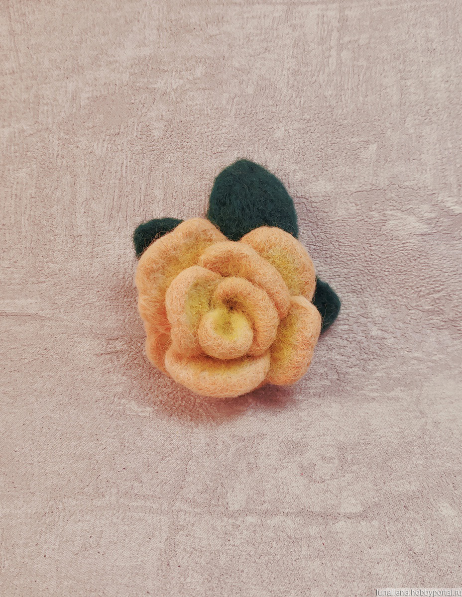 Нежная брошь в технике сухого валяния с тонированием сухой пастелью.