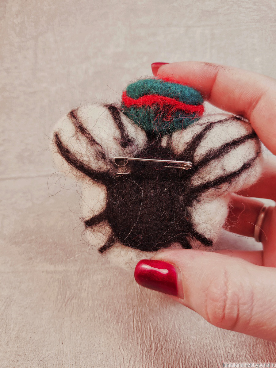 Брошь из шерсти с татарским акцентом в виде тюбетейки с элементом народного орнамента.