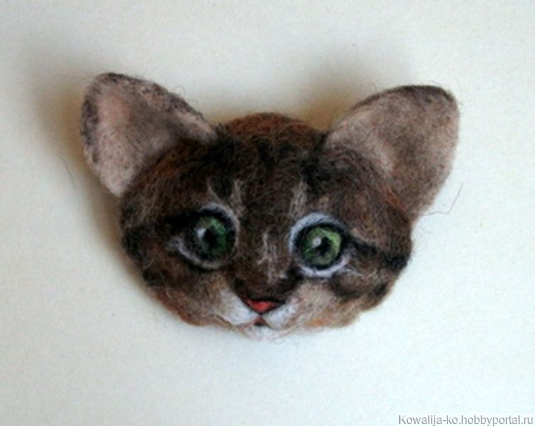 шерсть, брошь, котенок, животные, валяние, украшения