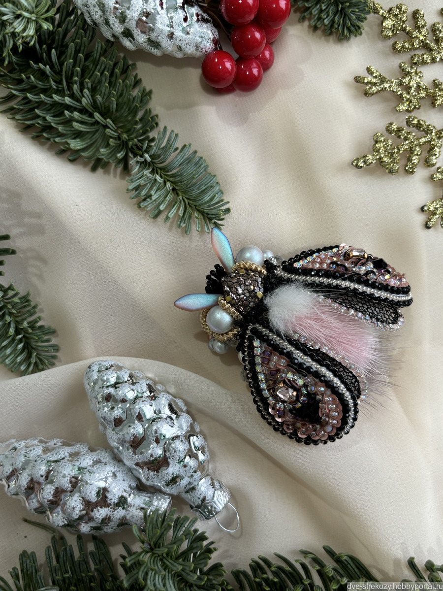Брошь выполнена из кристаллов Сваровски, Японского бисера, бусин, и натурального меха норки
