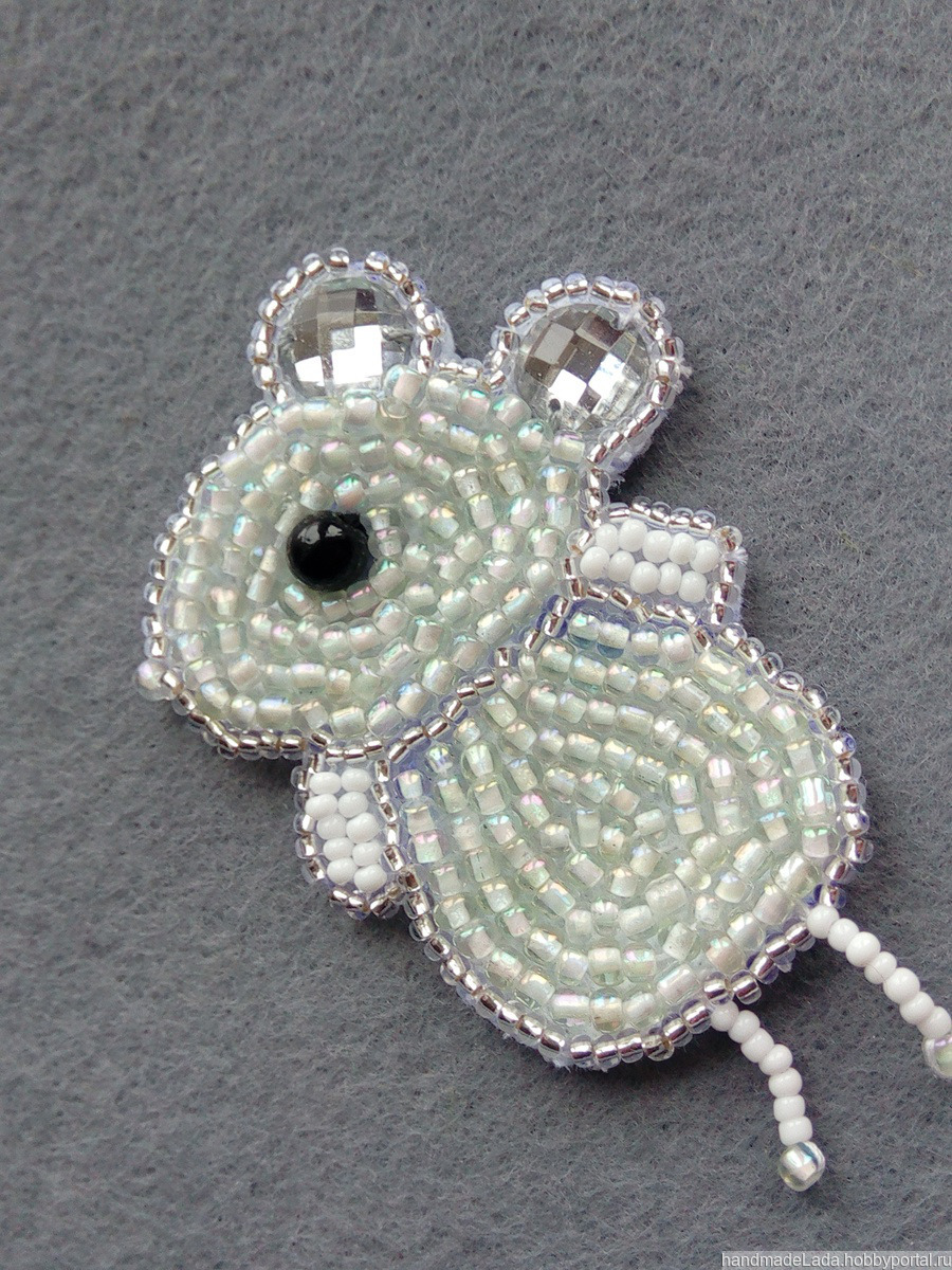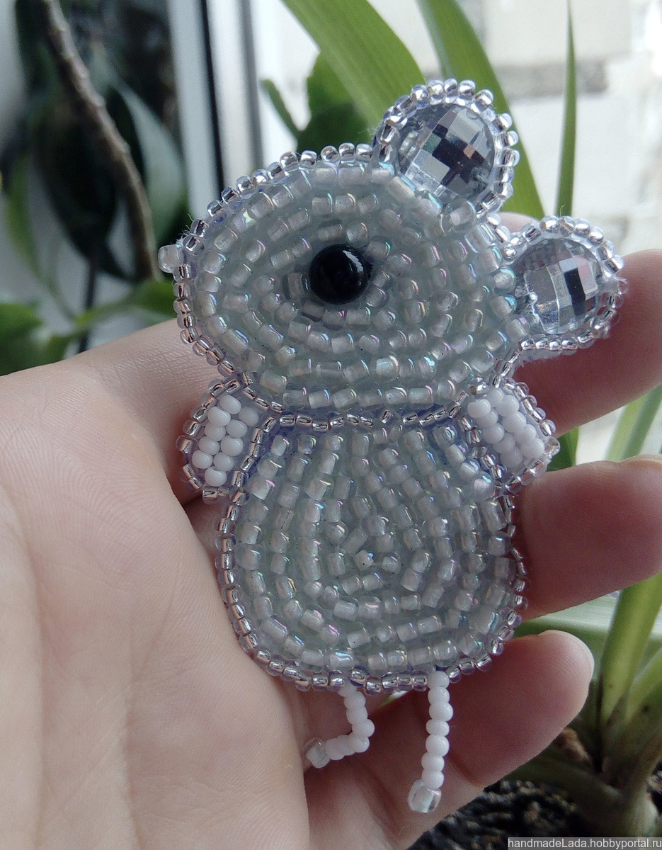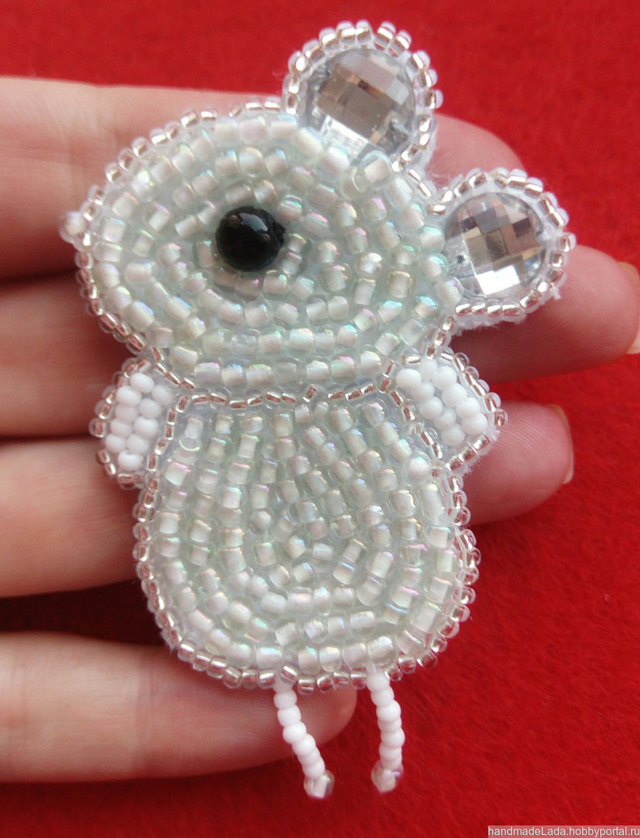Брошь Мышка из бисера, ручная работа. Возможно изготовление мышки на заказ. Согласно китайской легенде, мышь первая получила право править годом, названным её именем. В японской мифологии мышь – символ богатства и достатка.