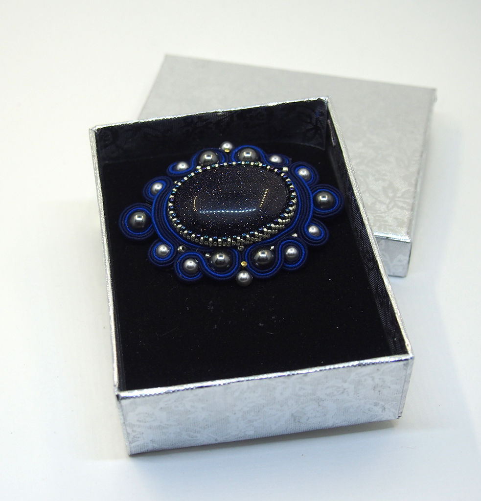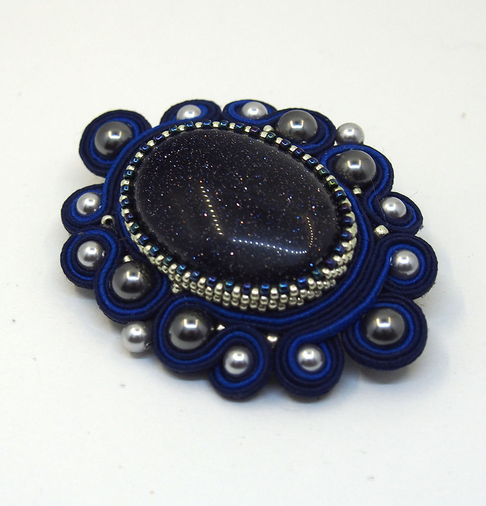 Небольшая брошка с синим синтетическим авантюрином.