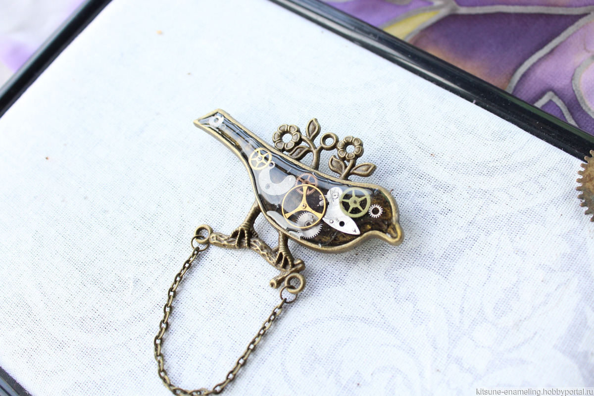 оригинальное украшение, часы, необычный подарок, часовой механизм, стимпанк, брошь птичка, стимпанк брошь, детали часов, птичка стимпанк, украшение бронза, брошь бронза