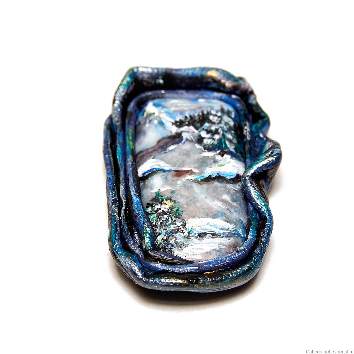 Брошь расписанная в ручную по натуральному камню + натуральная кожа.