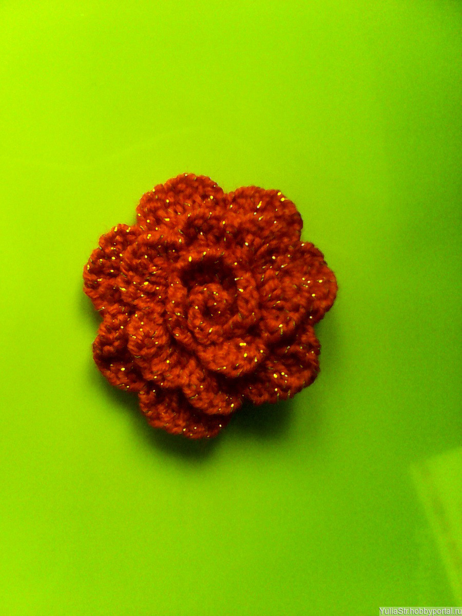 Объемный цветок,роза. Связана крючком из ниток с люрексом и сшита, сзади основа.