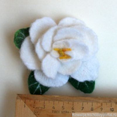 Брошь из шерсти, не предназначена для крепления на легкие ткани (шелк, шифон и т. д., если только не будет использован зажим). Крепление булавка и зажим вместе. Брошь не разлохматится со временем. Середину цветка можно ароматизировать. Размер задан по крайним точкам изделия.