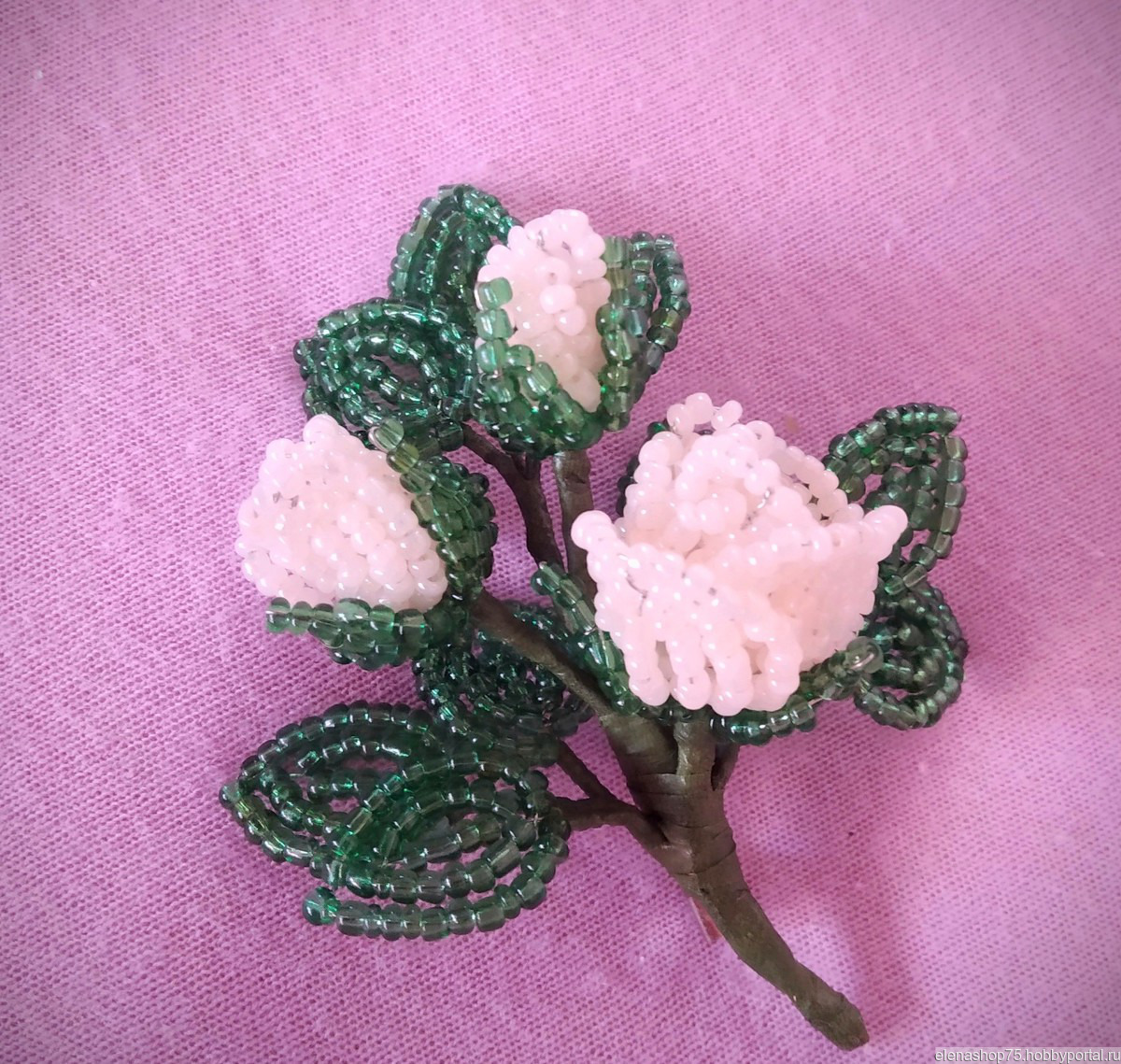 Брошь в виде букета роз выполнена в технике французского плетения.