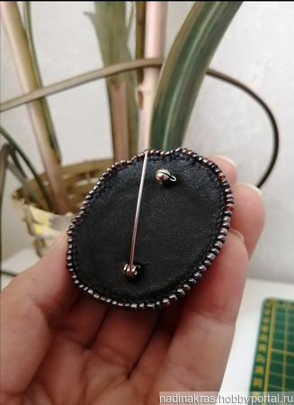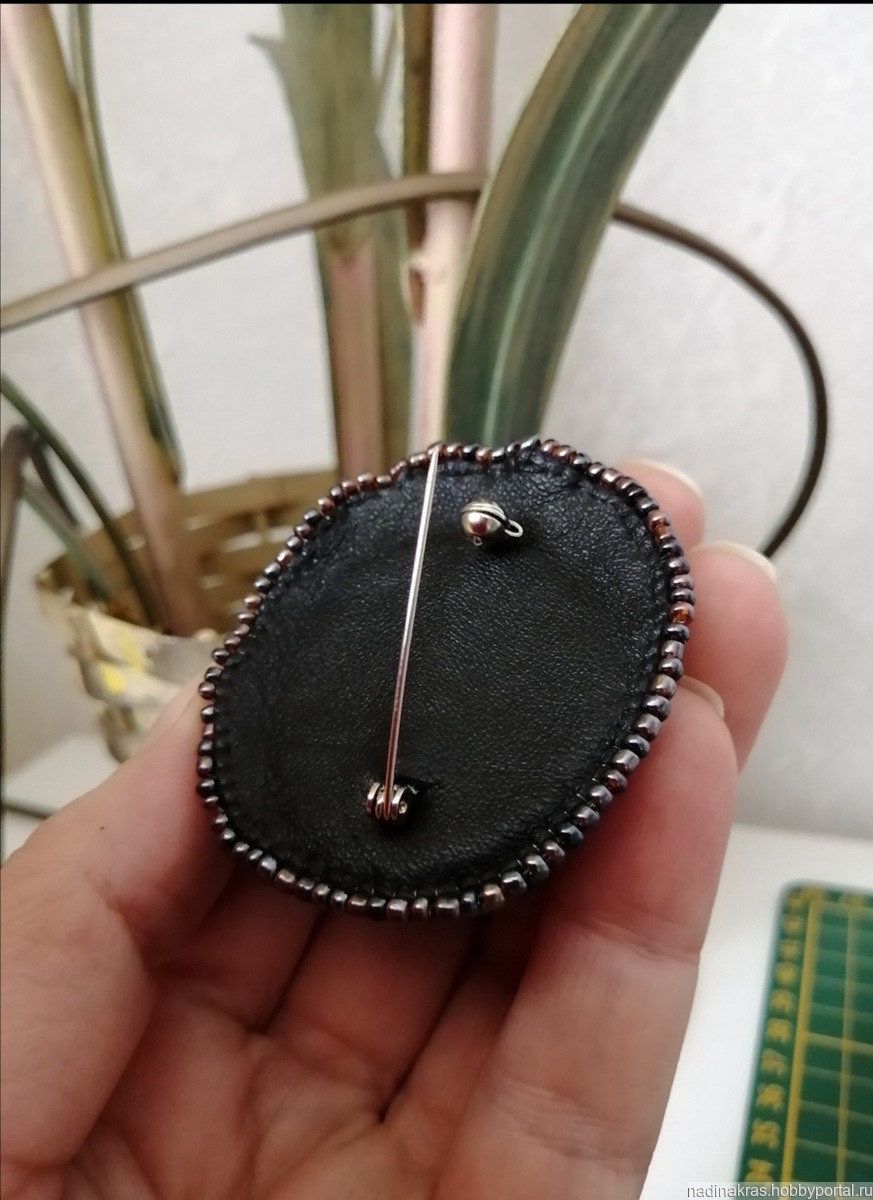 Брошь расшита чешским бисером, стеклярусом,ювелирными элементами, классической формы, изнанка-натур кожа, булавка японская, прочная, с защитой