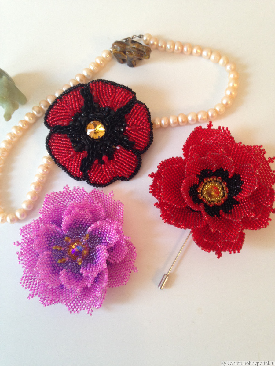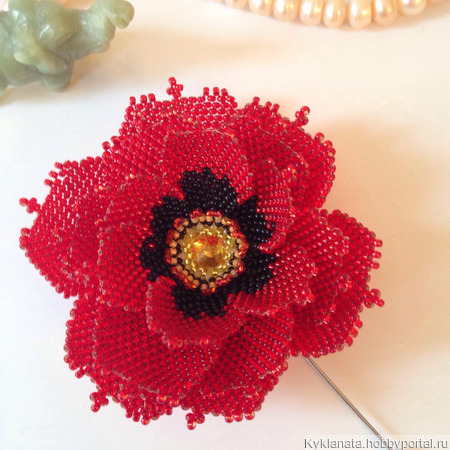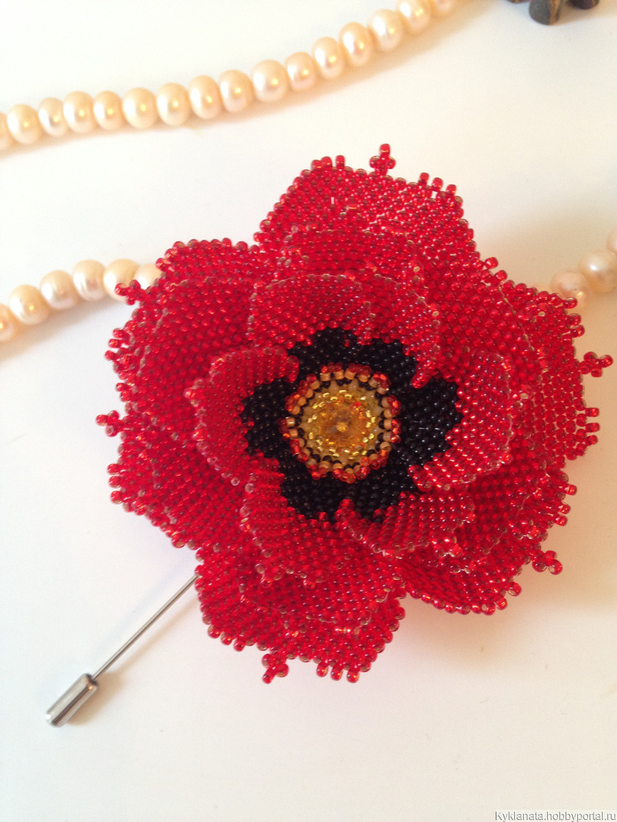 Брошь выполнена в форме цветка мака, который является символом любви, страсти и памяти. Красный цвет Мака придает броши особую яркость и выразительность в центре кристалл и тычинки из бисера. Каждый элемент броши тщательно подобран и аккуратно закреплен, что придает украшению элегантный и изысканный вид.