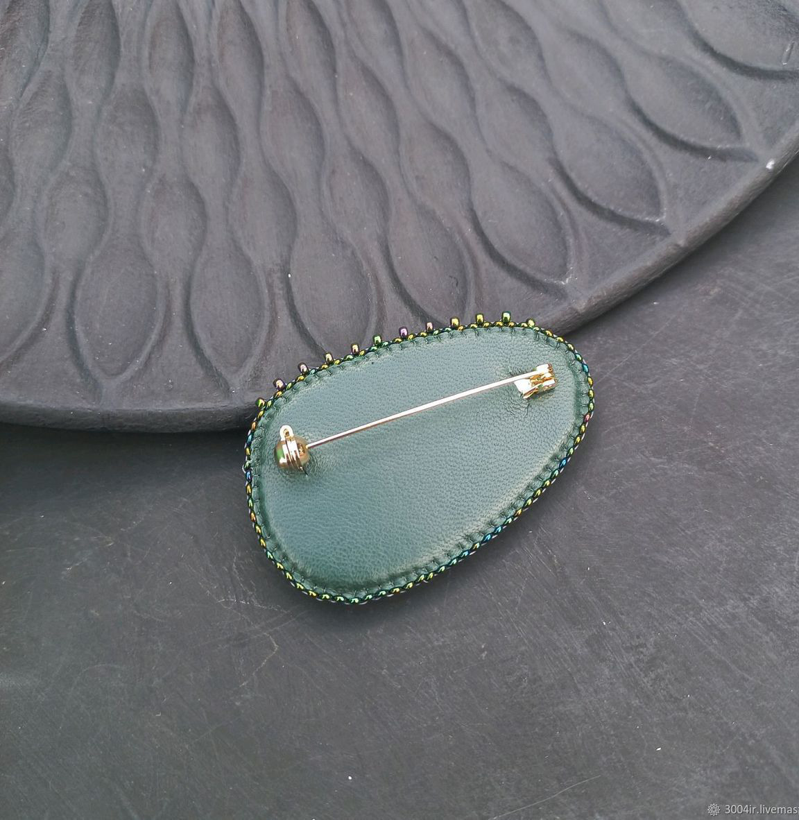 Булавка японская, с фиксатором. Изнанка подшита натуральной кожей